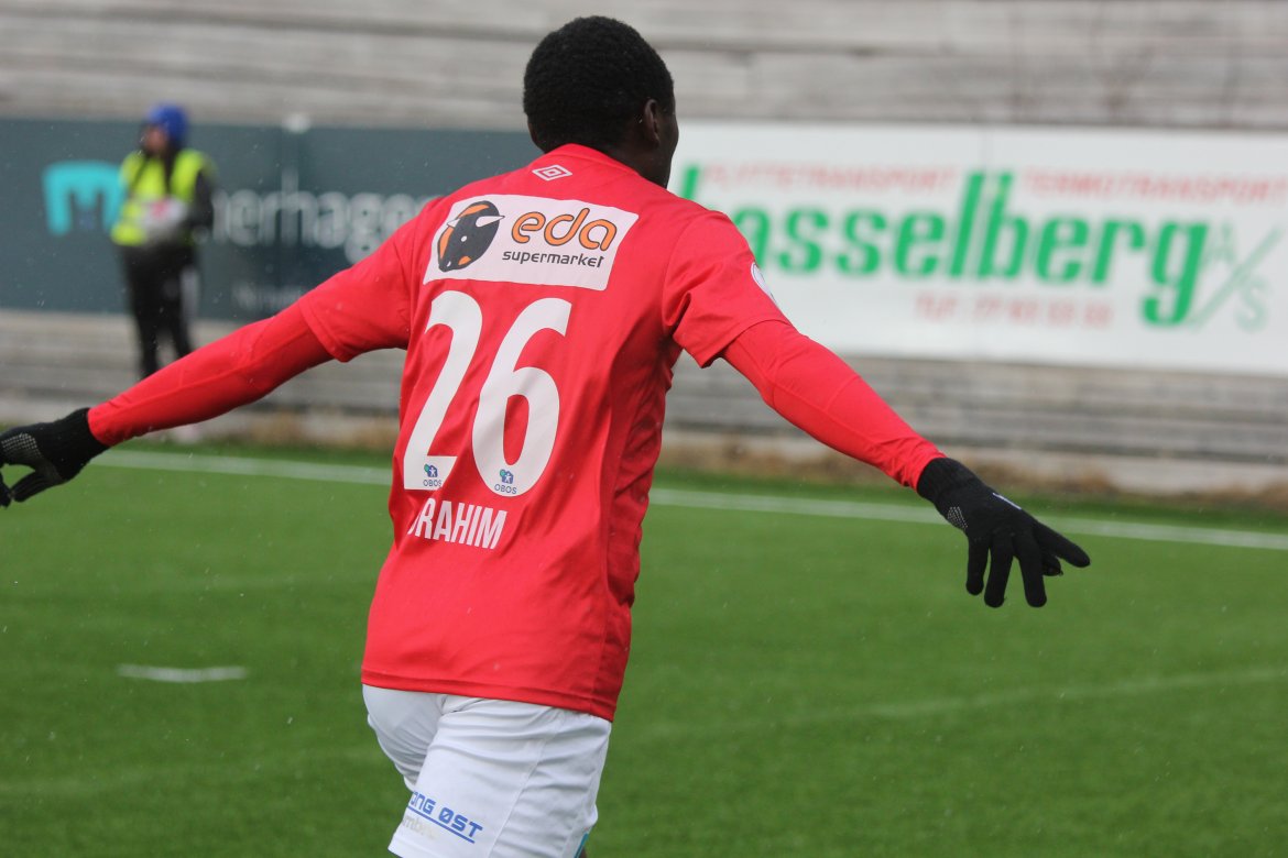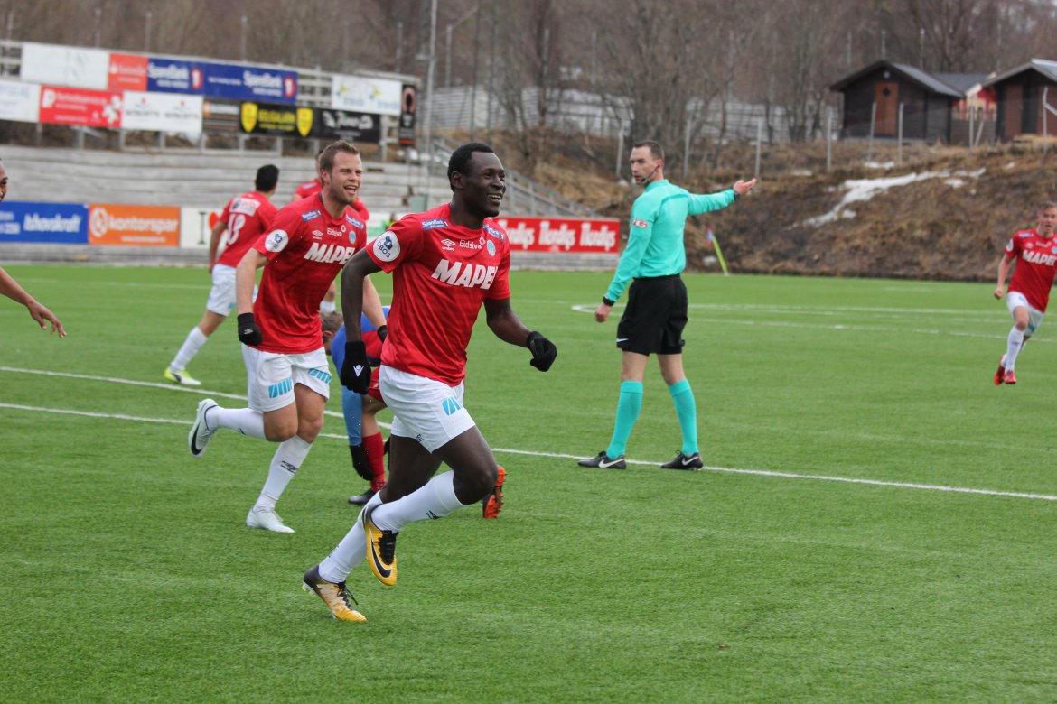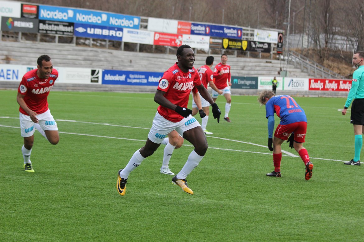Mål: 0-1 Shuaibu Ibrahim (43), 0-2 Ibrahim (59), 1-2 Andreas Løvland (62), 2-2 Løvland (65), 3-2 Vegard Lysvoll (68)