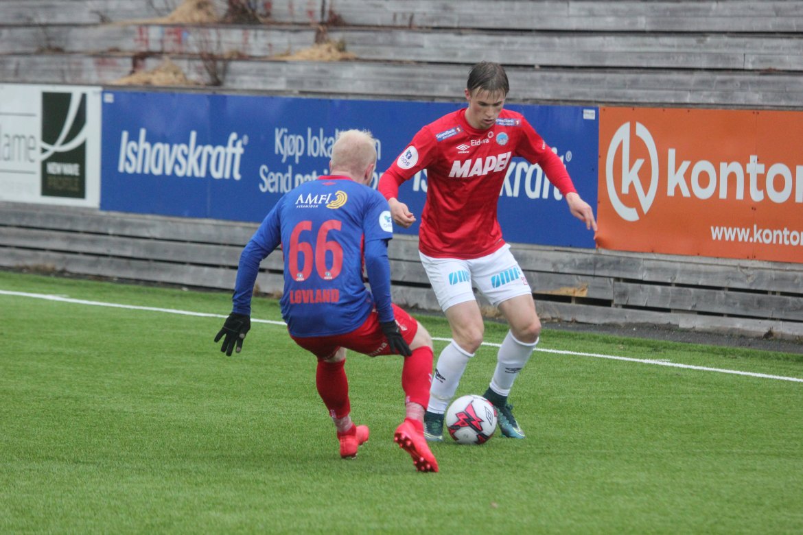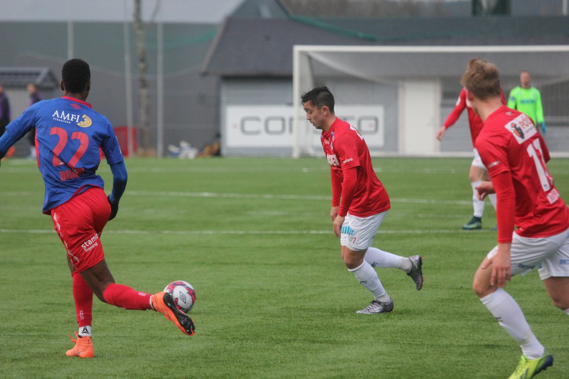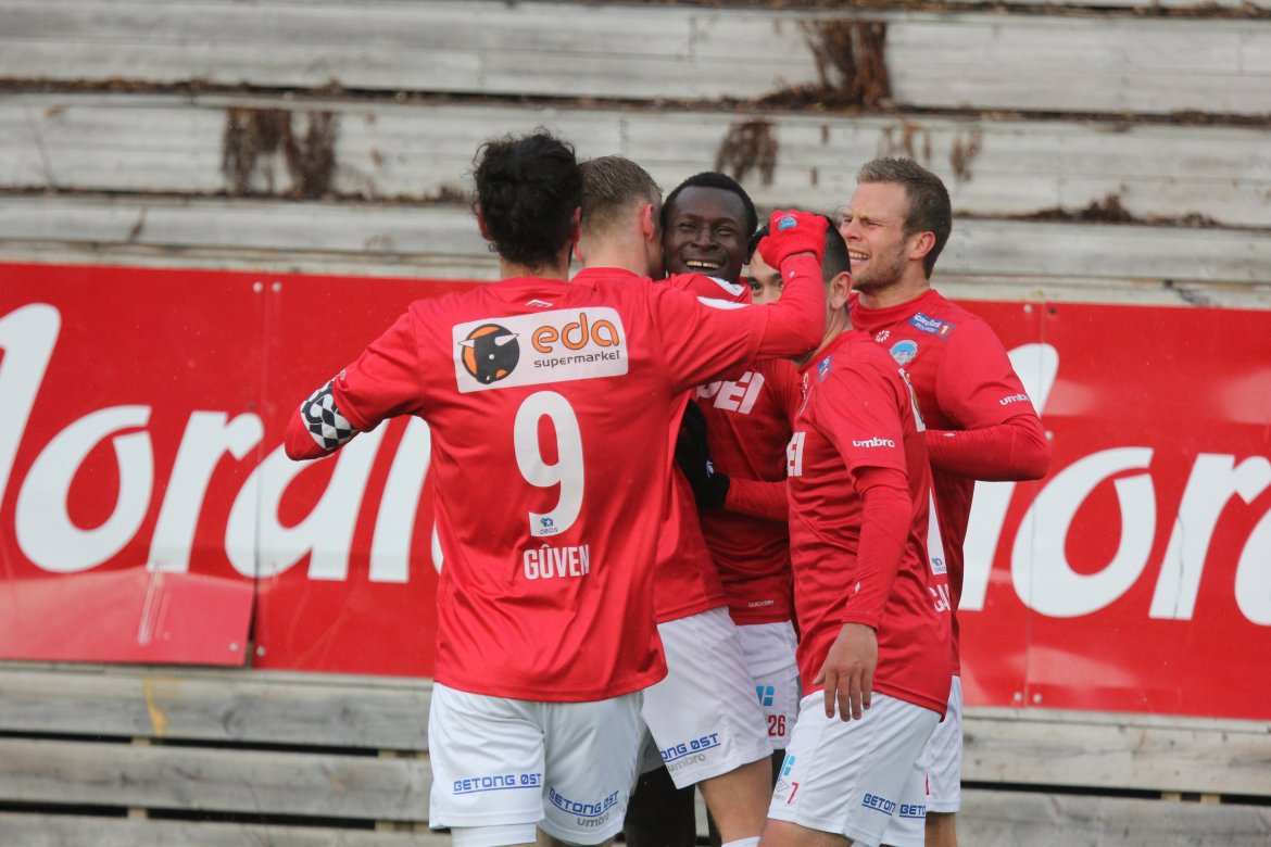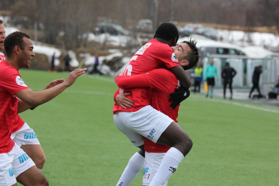 Mål: 0-1 Shuaibu Ibrahim (43), 0-2 Ibrahim (59), 1-2 Andreas Løvland (62), 2-2 Løvland (65), 3-2 Vegard Lysvoll (68)