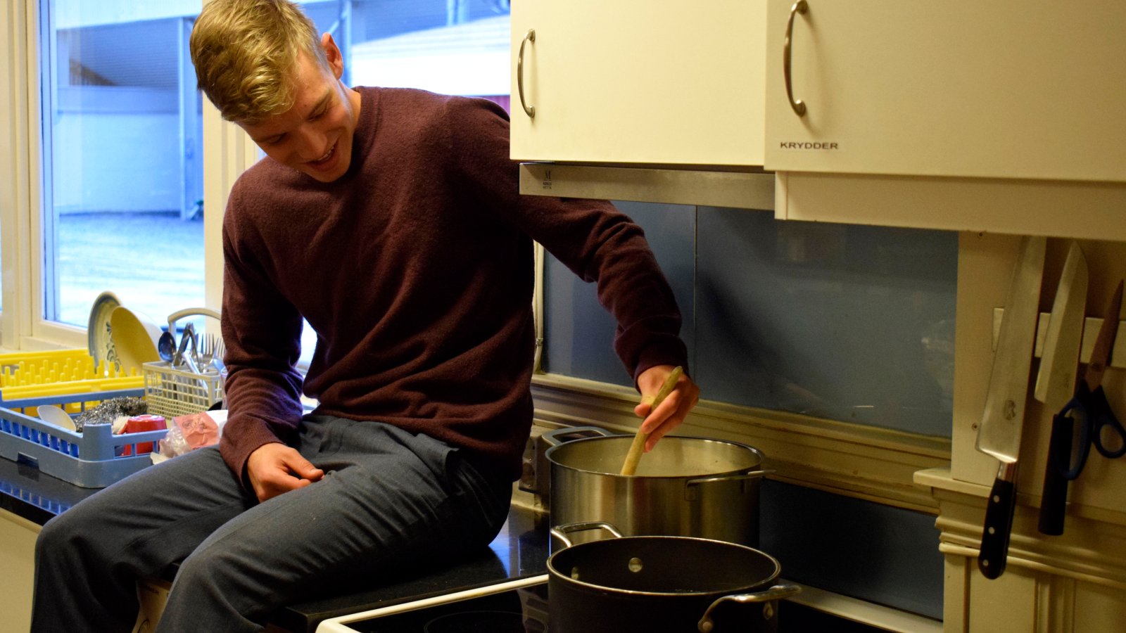 - De to yngste startet så går det to og to par oppover. Vi lager frokosten i en uke, så er det er neste par som tar over, avslutter Vinjor før han må passe på at verken grøt eller egg går til spille.