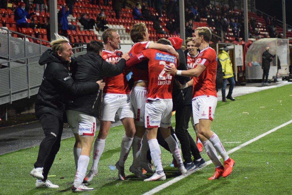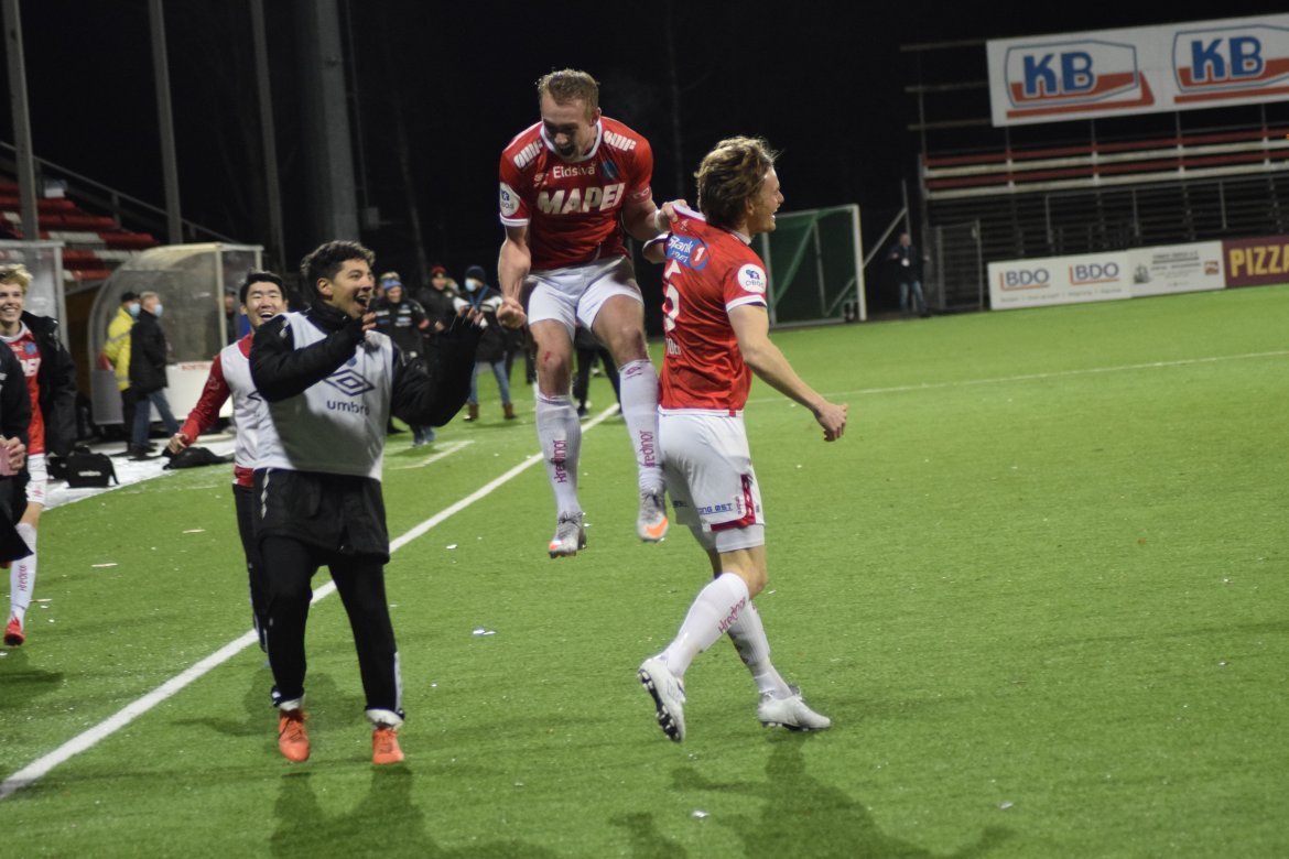 Se vår fotoserie og jubelscenene fra garderoben etter kampen mot Stjørdals-Blink.