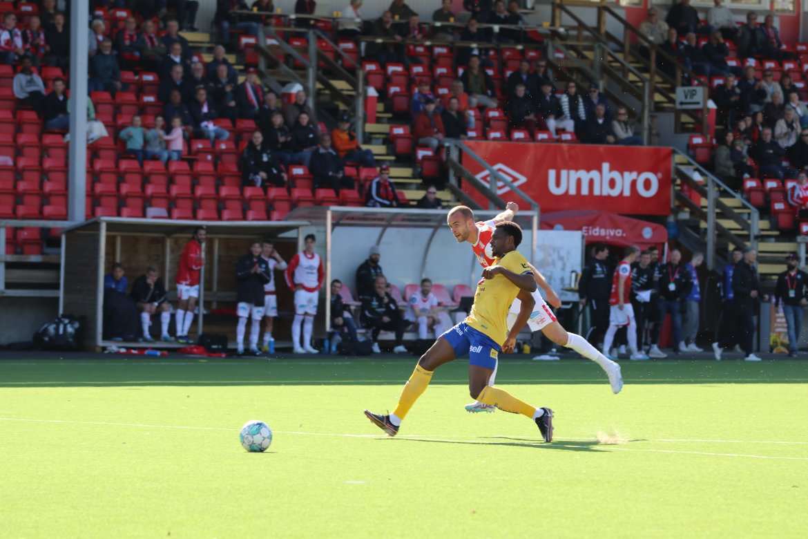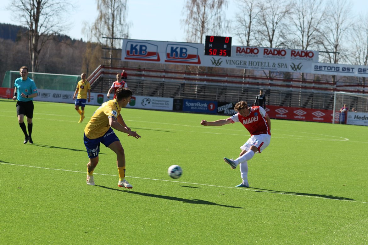 I starten av andre omgang viste Jesper Grundt, som hadde både målgivende og scoring i onsdagens kamp, at han hadde fått smaken på mer. Dessverre strøk ballen forbi på feil siden av stolpen.