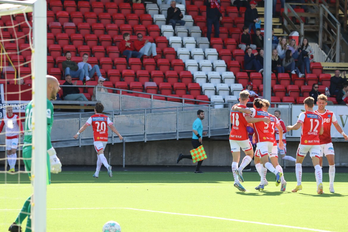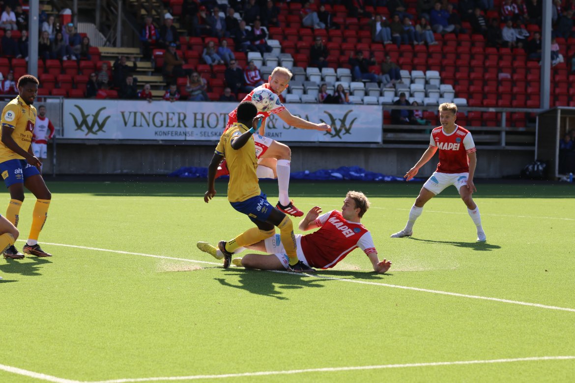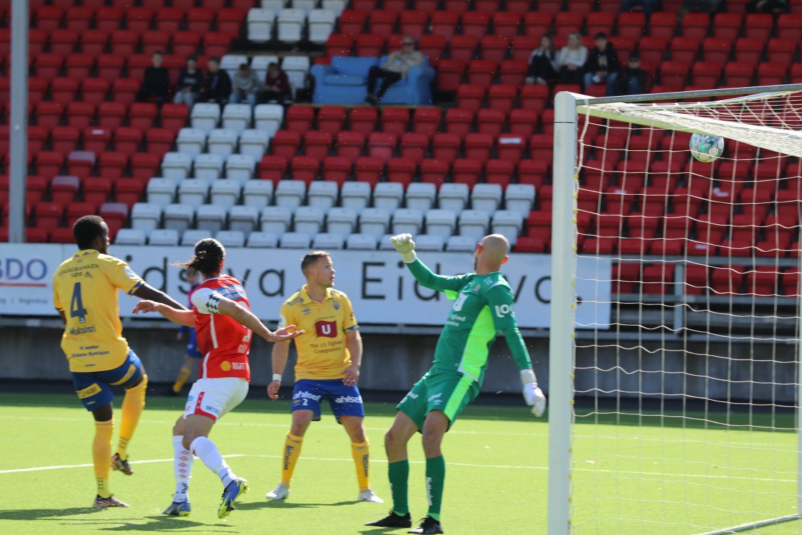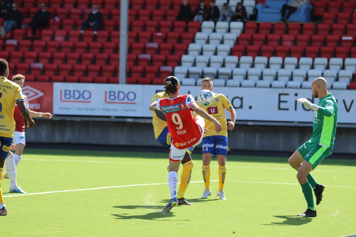 Etter et innlegg fra Joacim Holtan var spissmakker Adem Güven svært nær å gi hjemmelaget ledelsen med en avslutning av det småakrobatiske slaget, men han måtte nøye seg med å se at ballen smalt i tverrliggeren og ut igjen bak en utspilt målvakt.