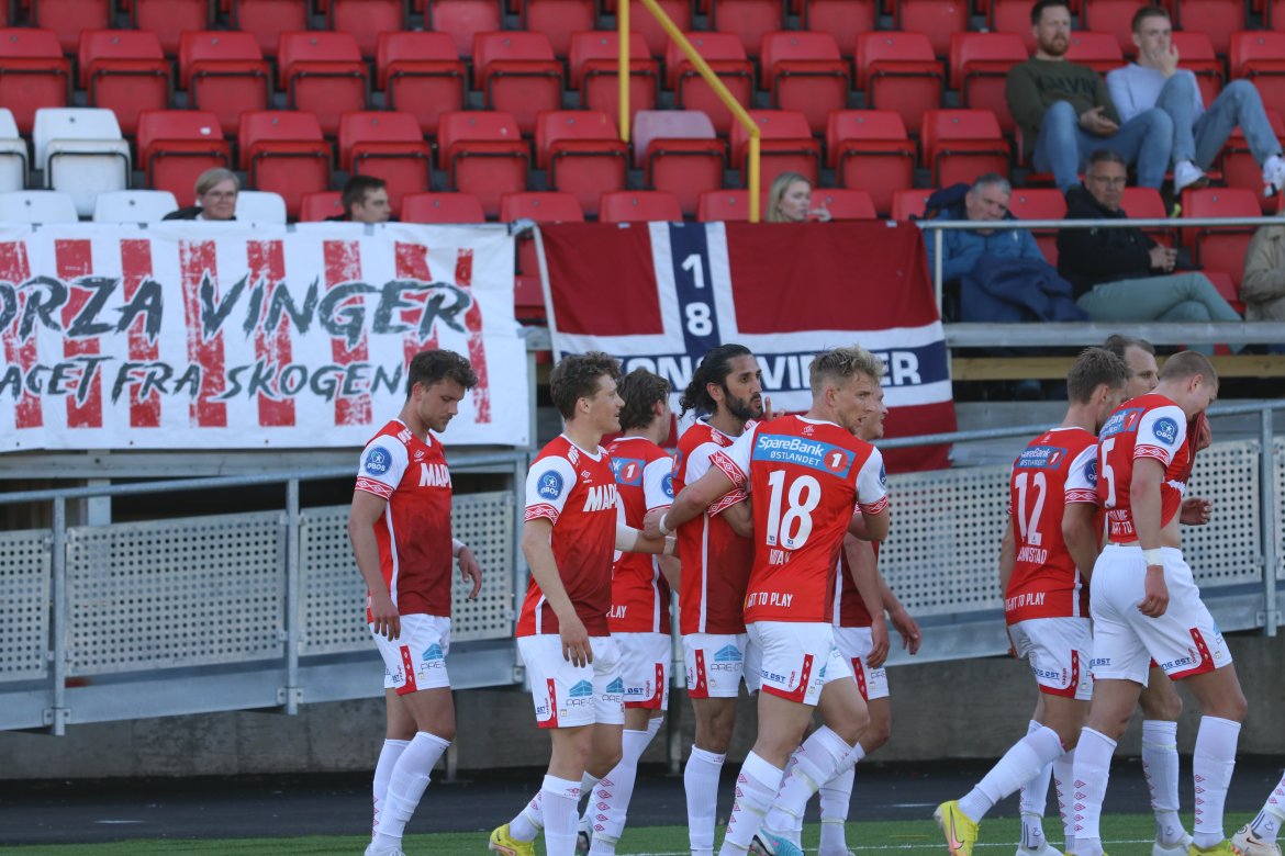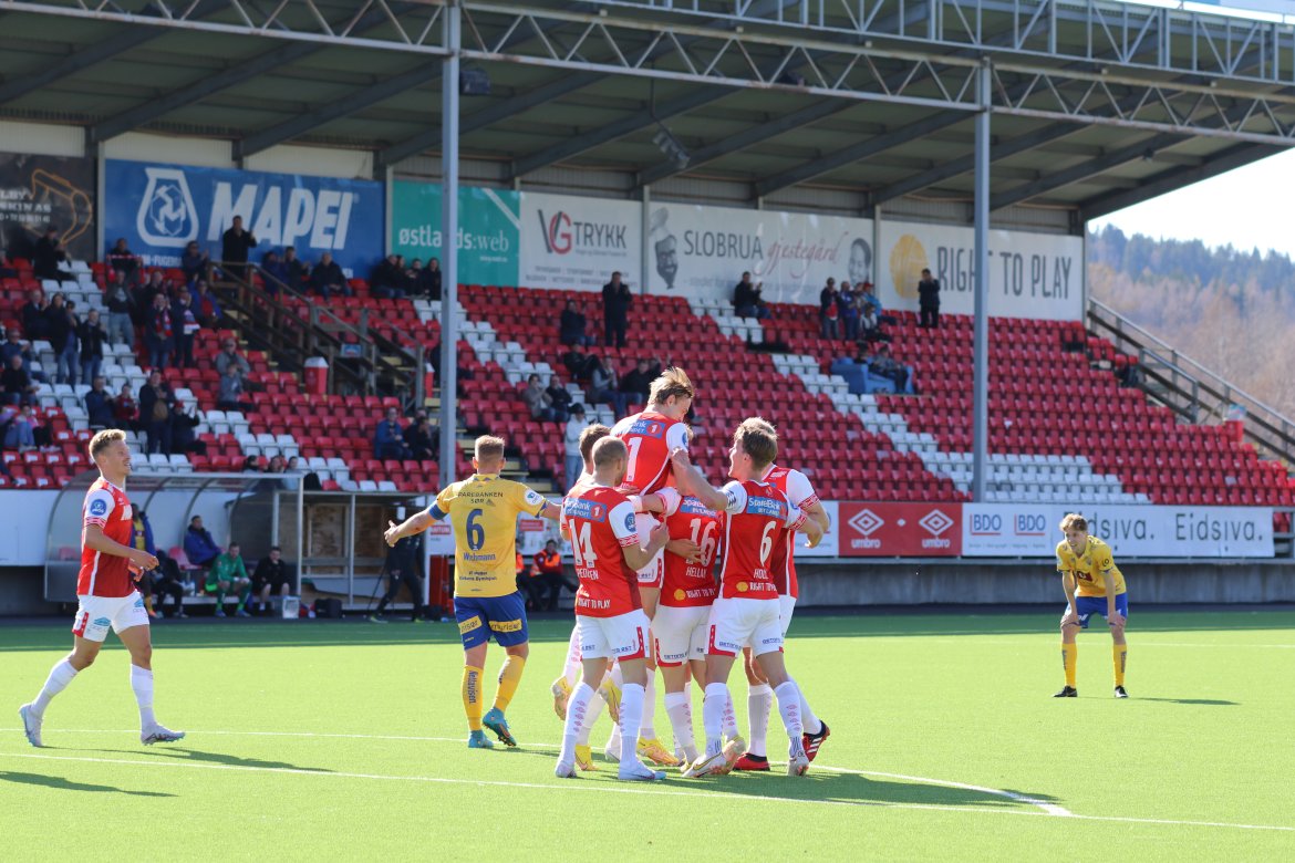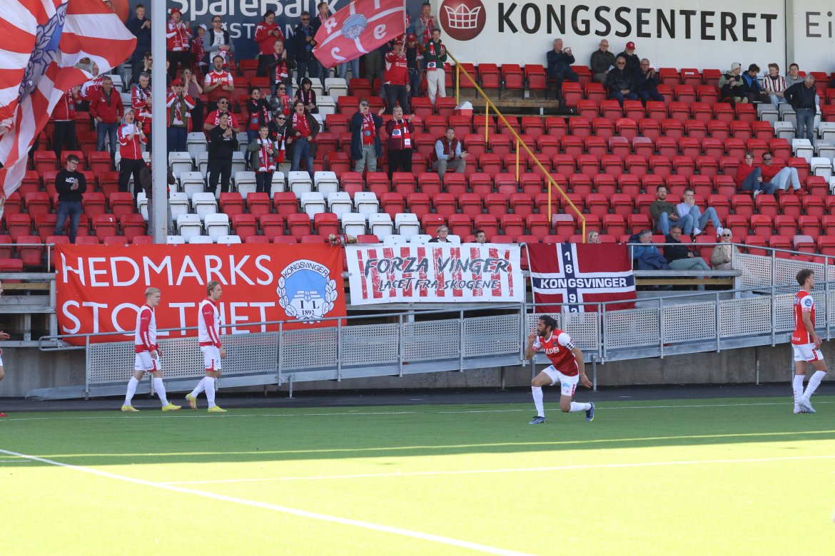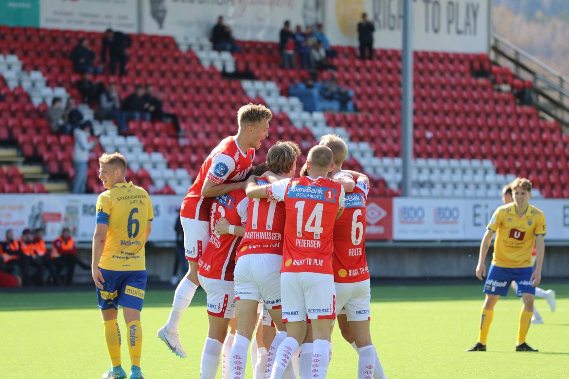 Her har Martin Hellan akkurat satt inn sitt første offisielle mål i KIL-trøya. Det sørget for at KIL vant 2-1 hjemme mot Jerv. Bildegalleri
