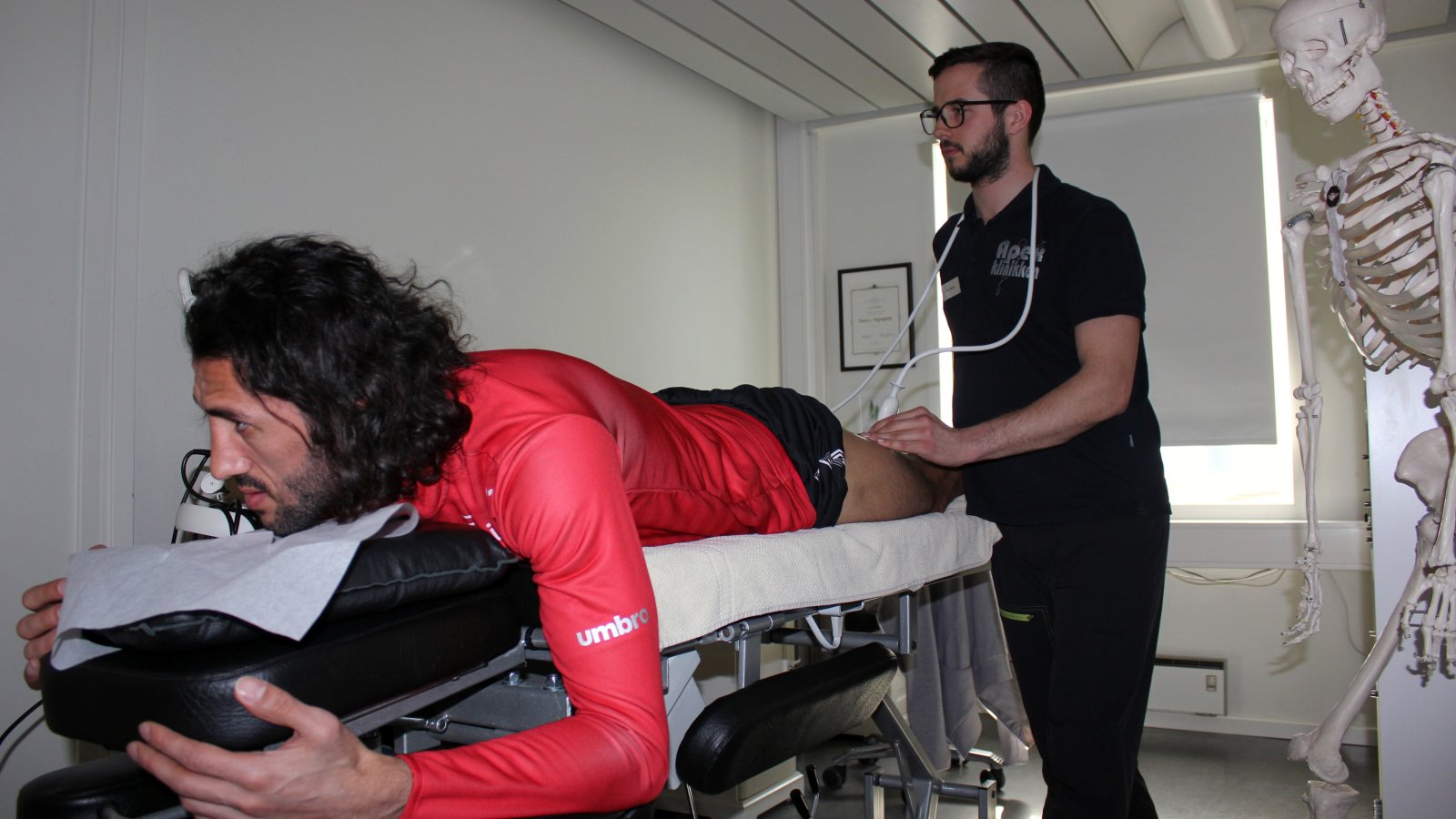 Naprapat Arve Hembre undersøkte Güven i ettermiddag.