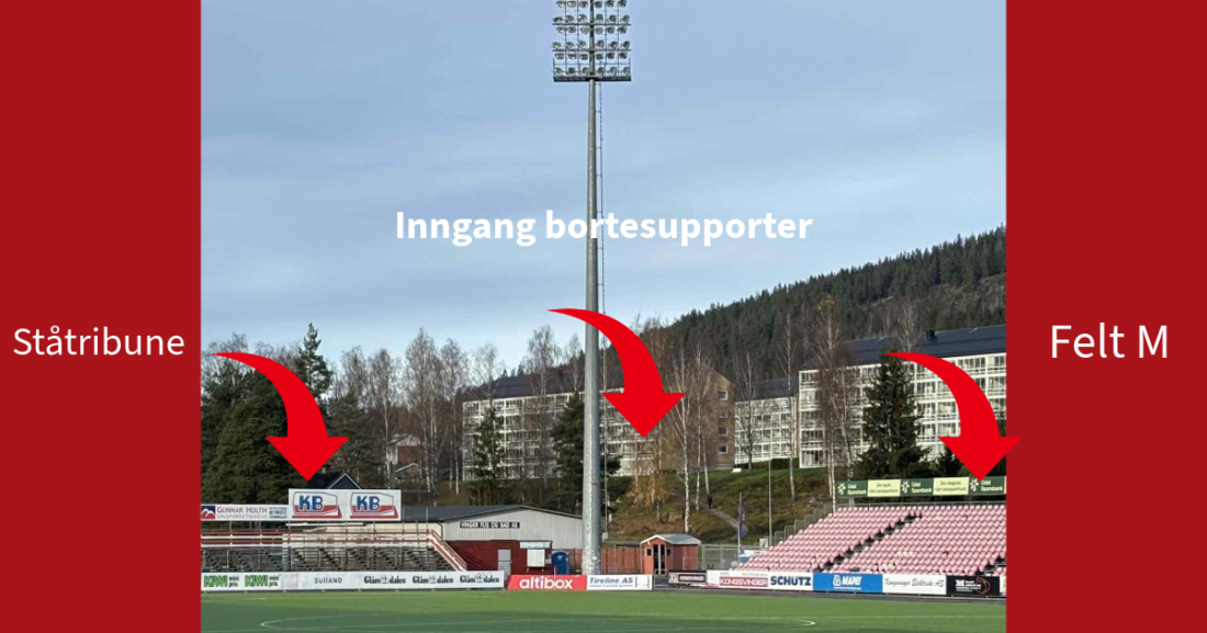 Alle billetter skannes ved ankomst, og har du billett til borteseksjon vil du bli nektet adgang gjennom hovedinngang. Bortefelt har ei heller adgang for billetter til øvrige felt.
