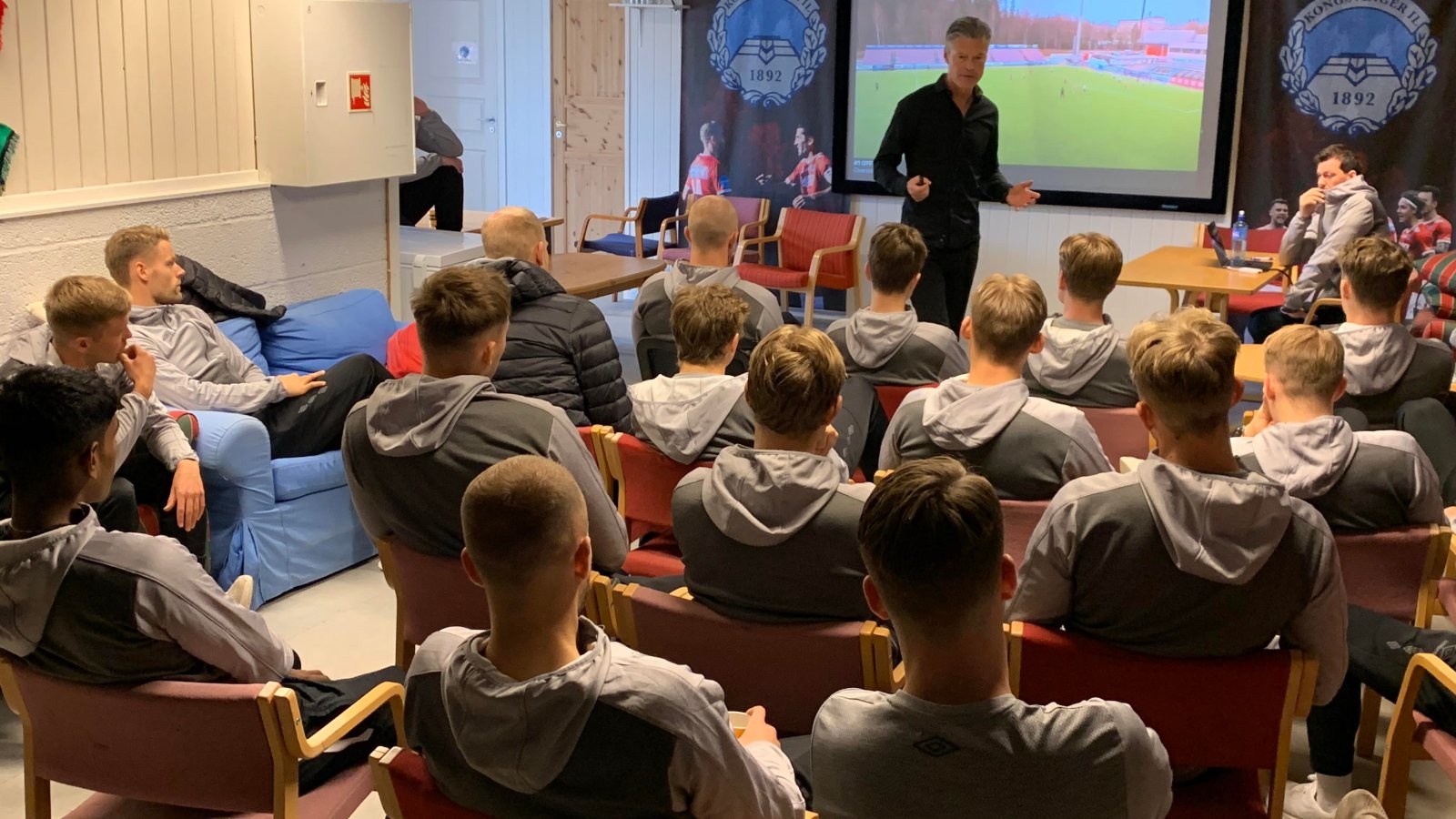 Hansen har foreldrene på besøk, og selv etter litt betenkningstid har paret problemer med å bestemme seg for hvem de skal heie på. For de har også hatt et forhold til Mjøndalen, klubben sønnen trente i 17 år, lenge.