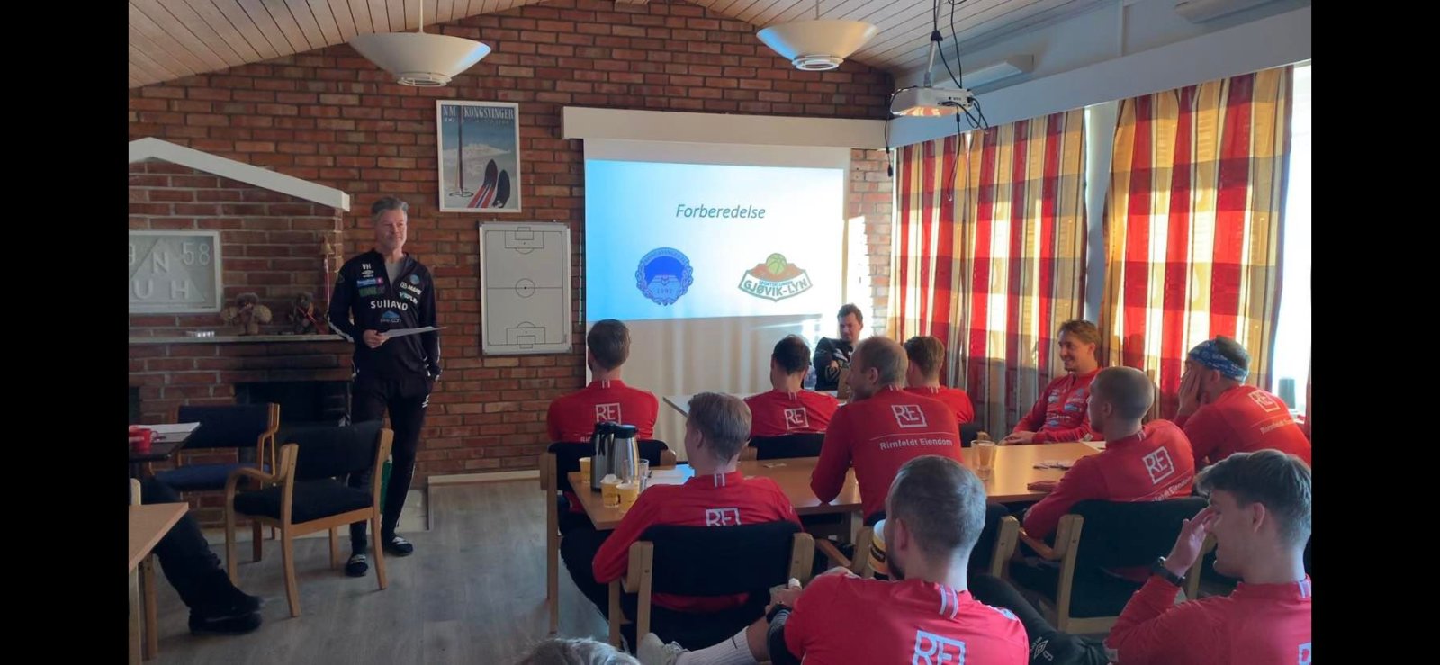 Før torsdagens trening ble det gått gjennom litt video av ulike sekvenser det skal jobbes med, både i vanlig spill og på dødballer.
