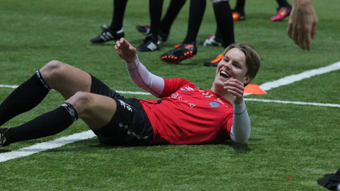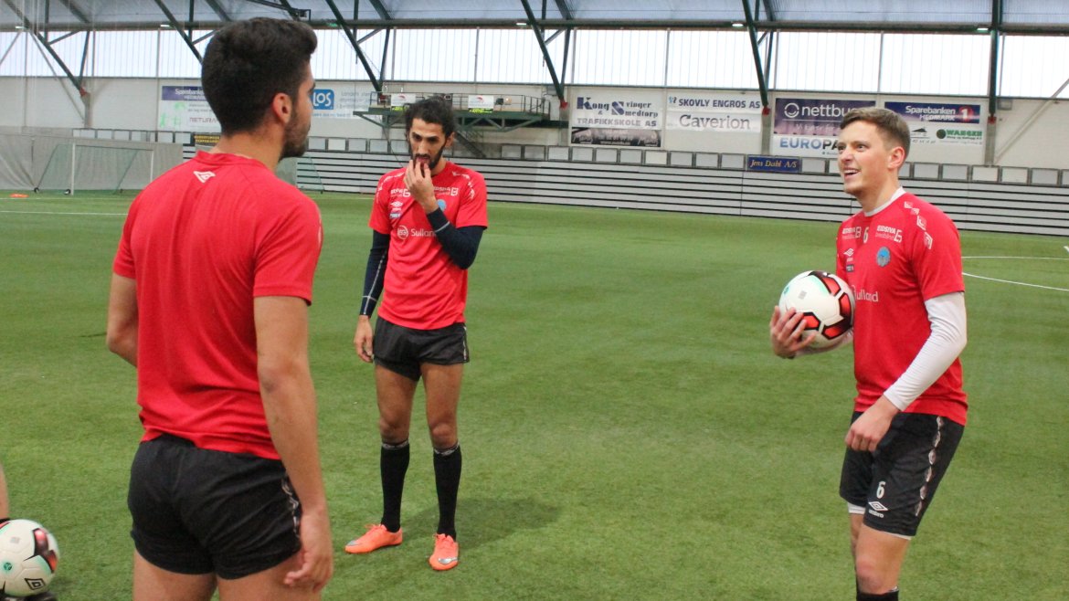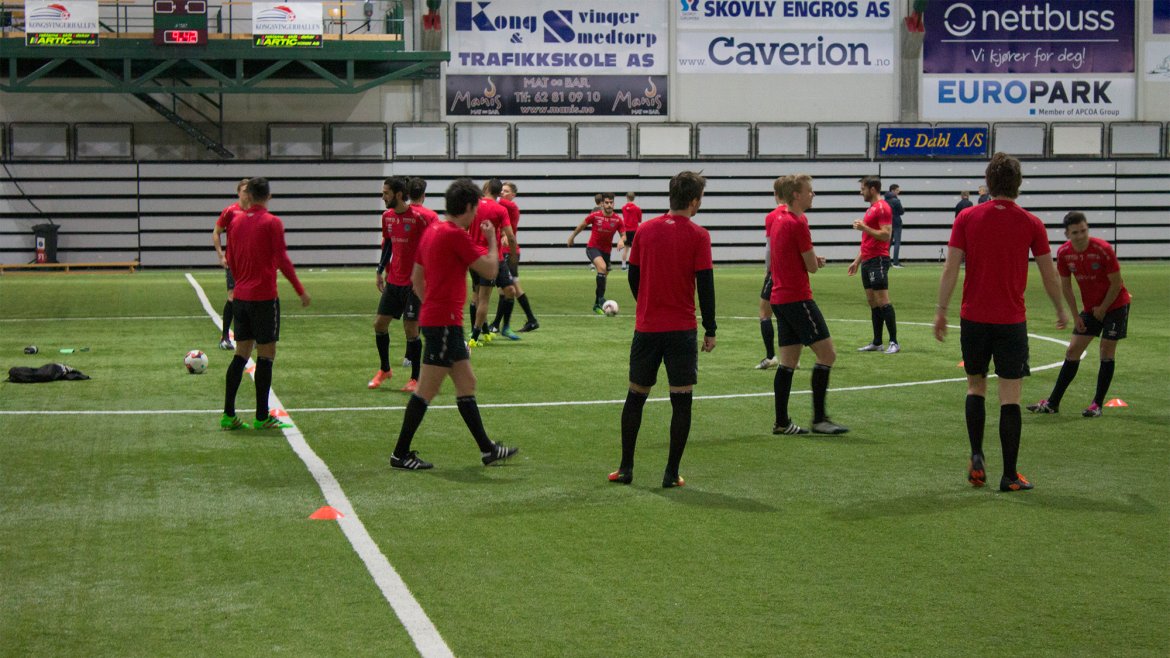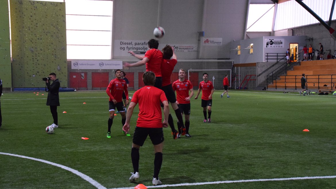 Under kan du imidlertid se en rekke bilder fra dagens fotballøkt ledet av Trond Amundsen. Det er en humørfylt og spent spillergruppe.