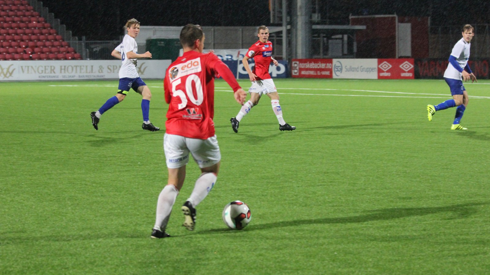 Det hele begynte med en scoring av Ludvig Langrekken. Innbytter Johan Olsen ble spilt gjennom og fant Langrekken i feltet. Flott 1-0-scoring.