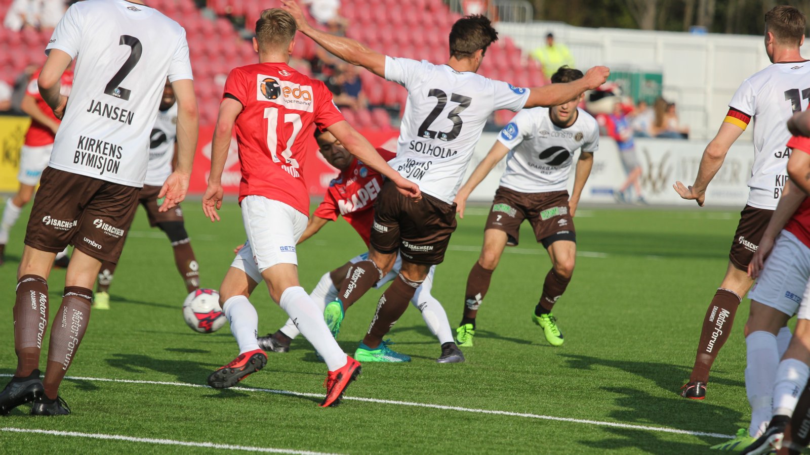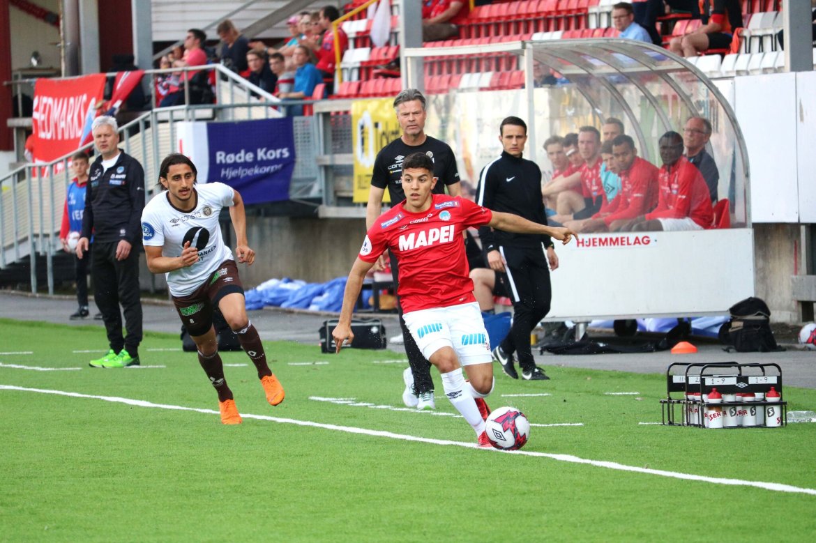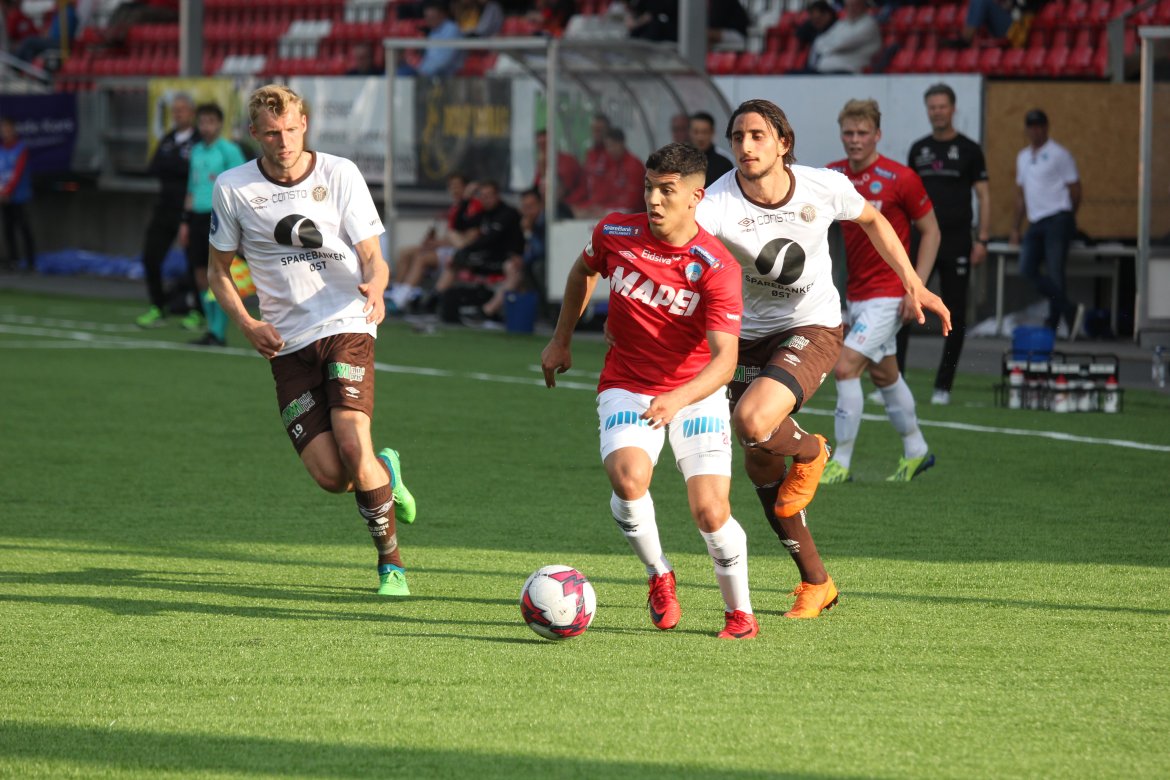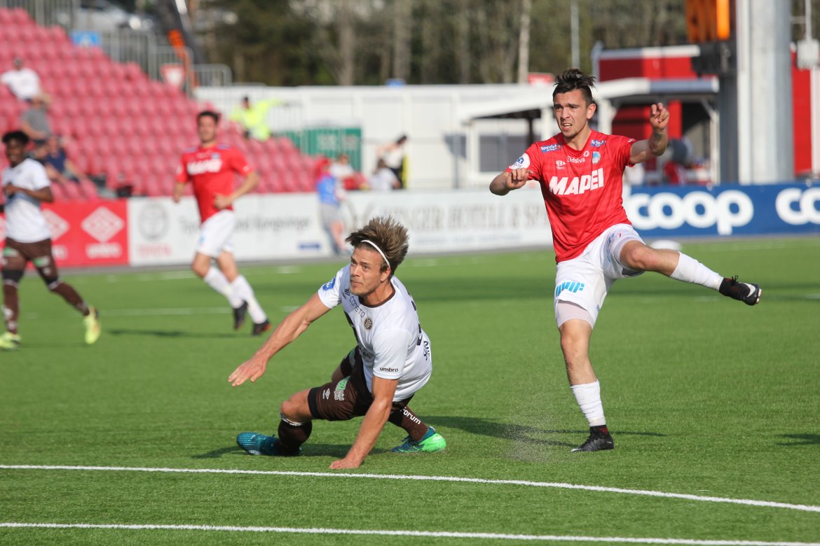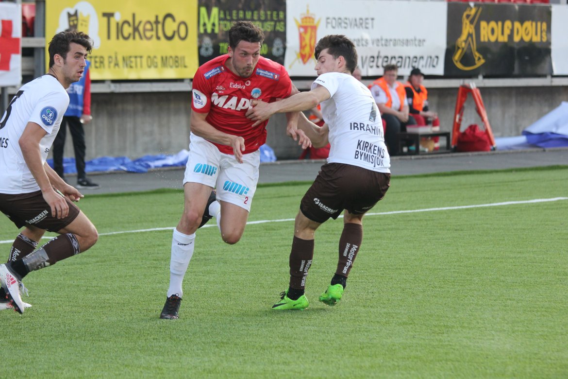 Så kom det endelig en pasning i bakrom. Shuaibu Ibrahim, som kom inn for Adem Güven i pausen, la inn og i kaoset ble det nesten 1-1. Minuttet etter kom det en gjennombruddspasning til, og igjen ble det sjanse, men Mjøndalens keeper reddet Ibrahim sin harde avslutning. Tydeligvis lettere å skape noe når motstanderen ikke er i balanse.