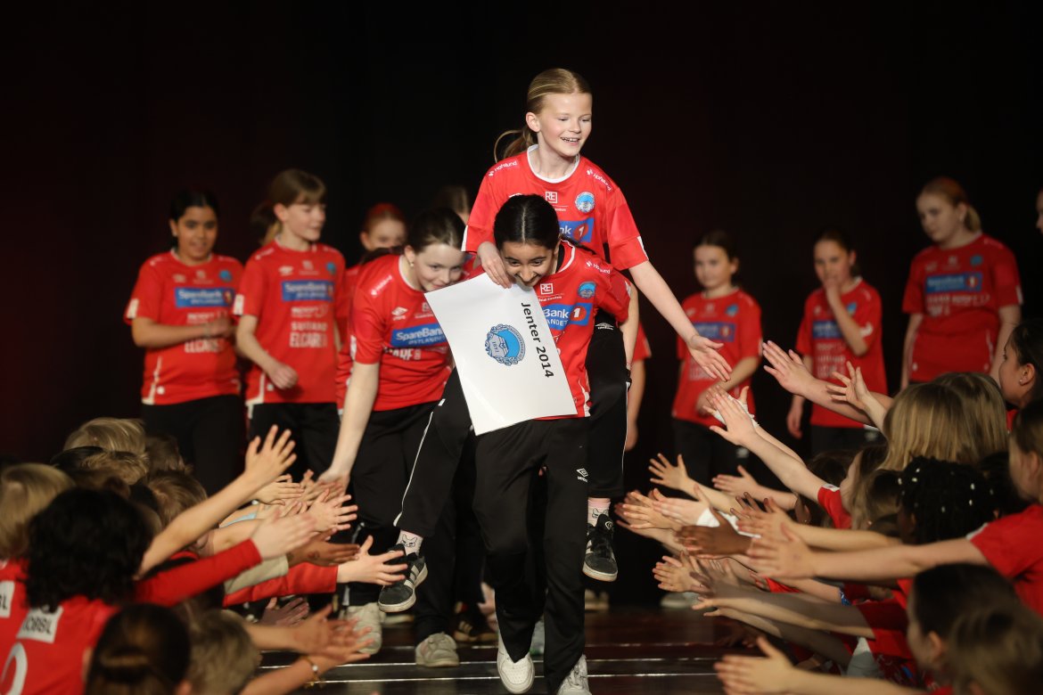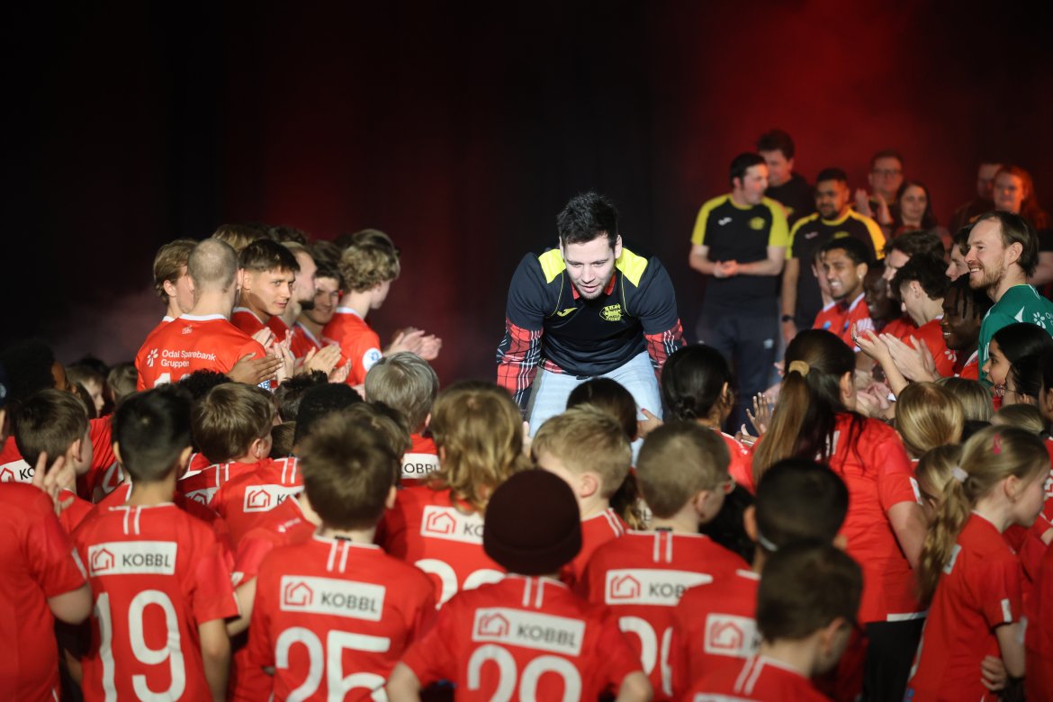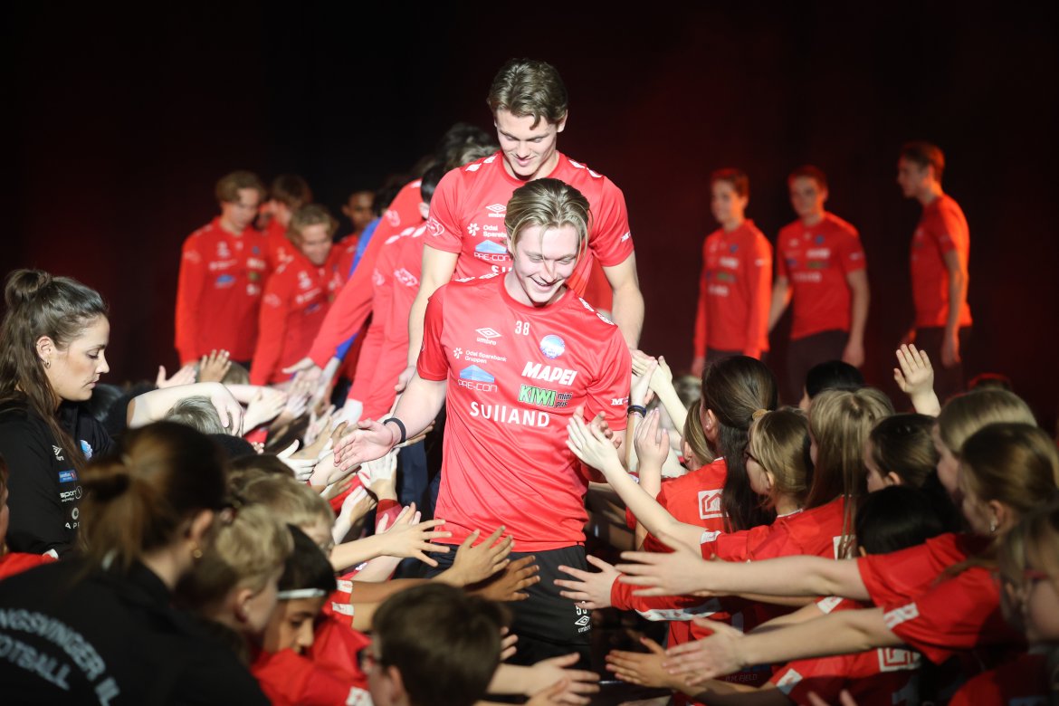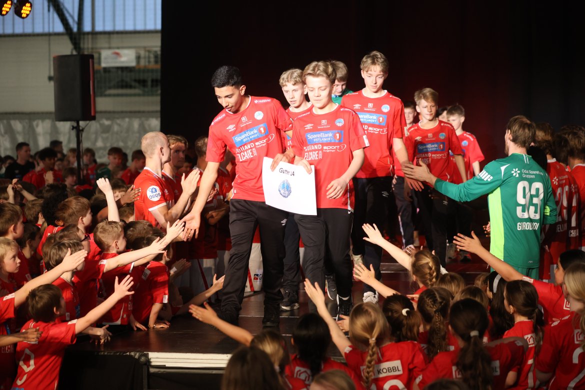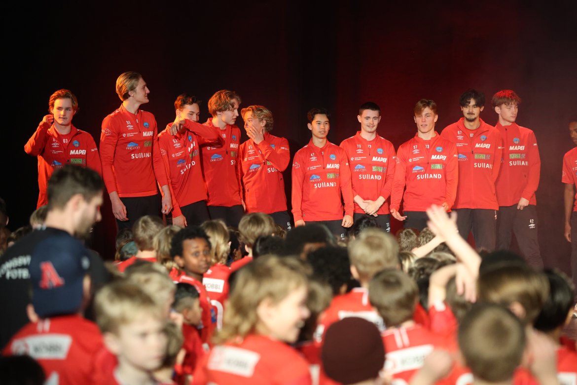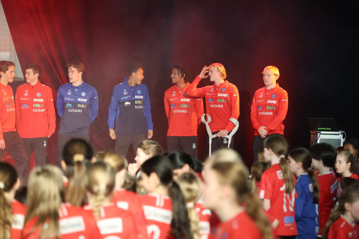 Se A-lagsspillernes presentasjon på scena: