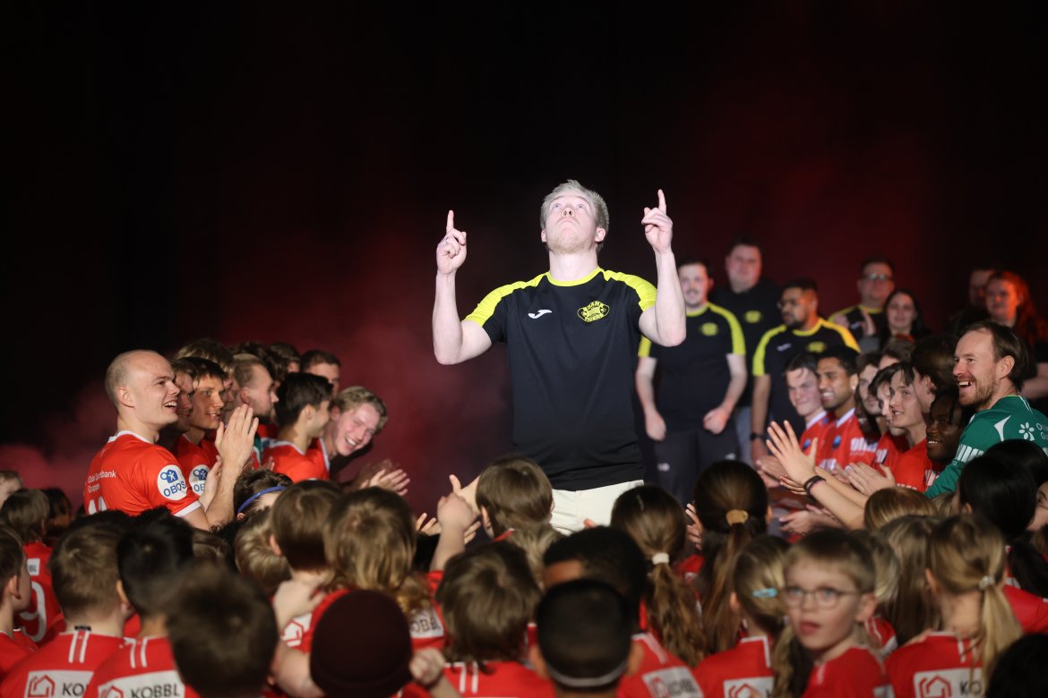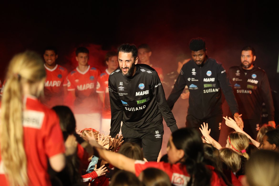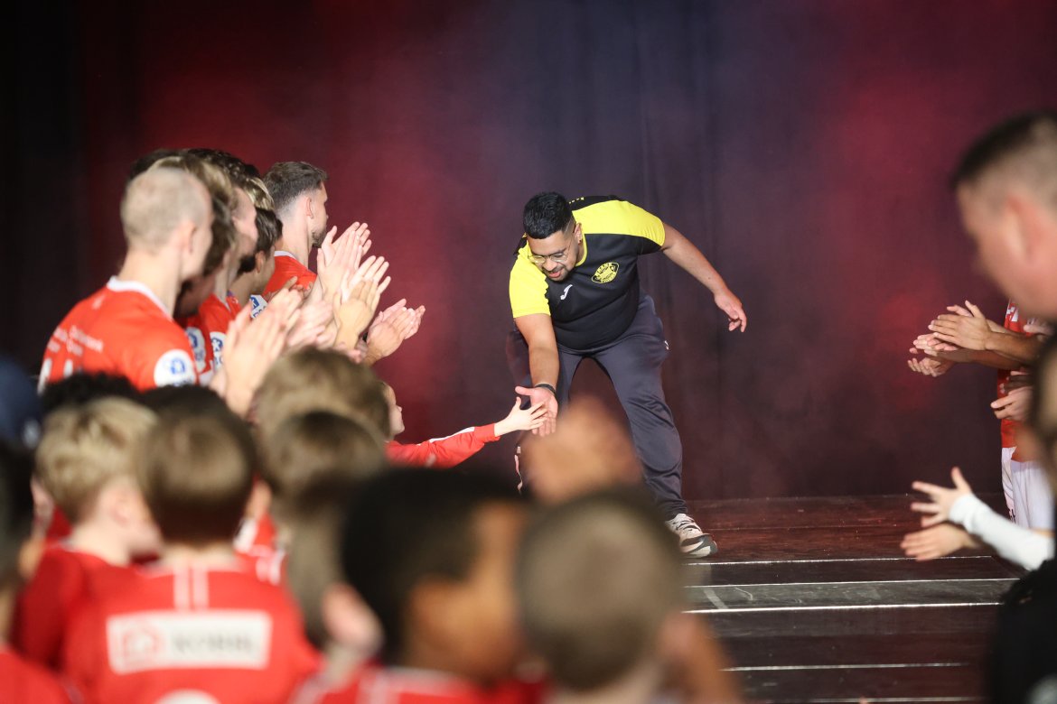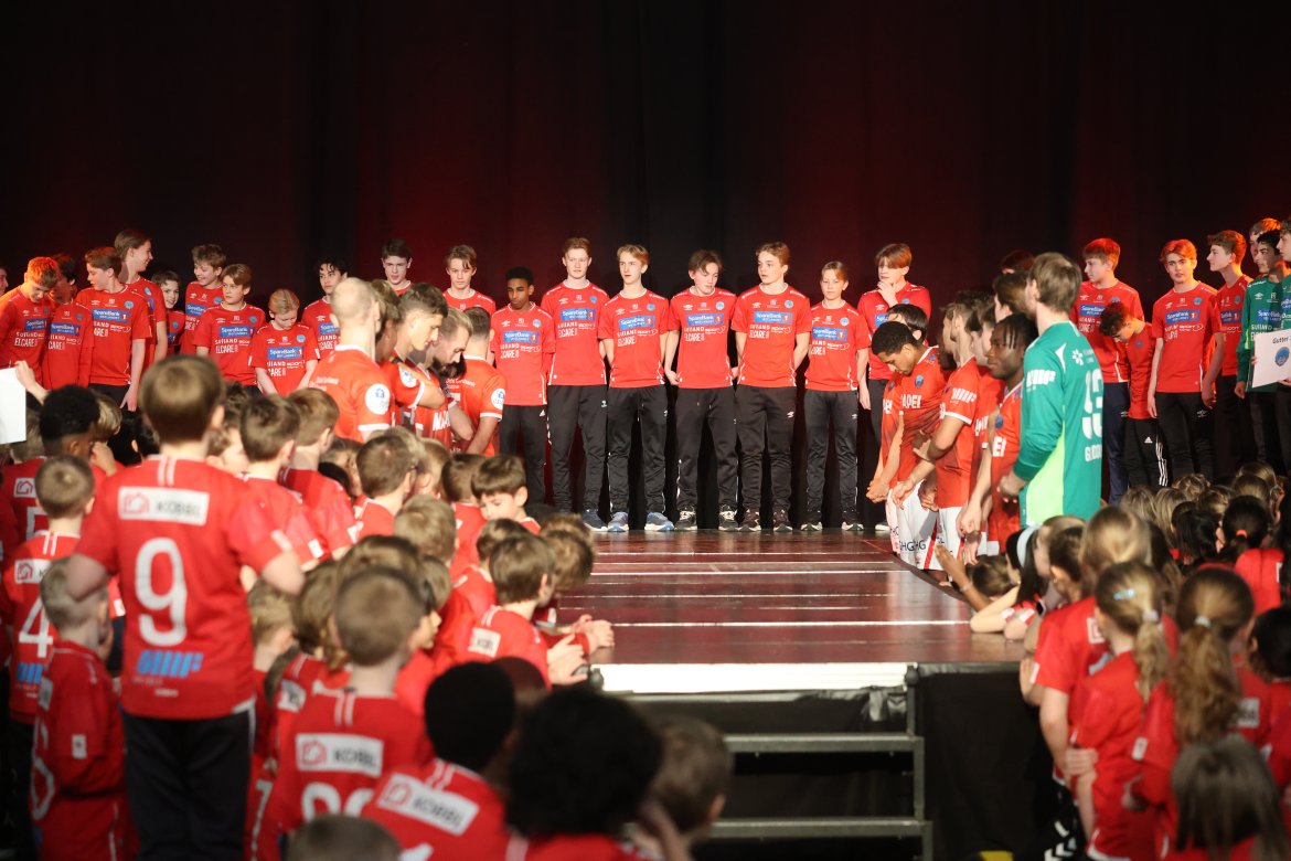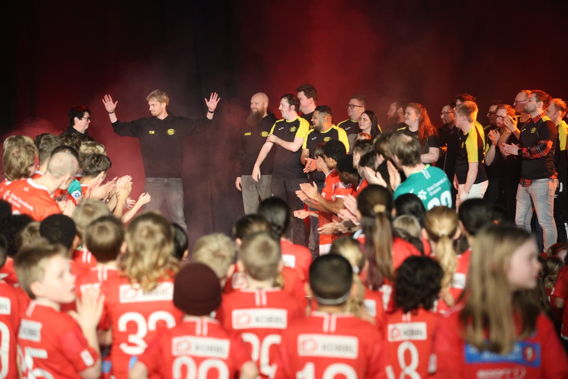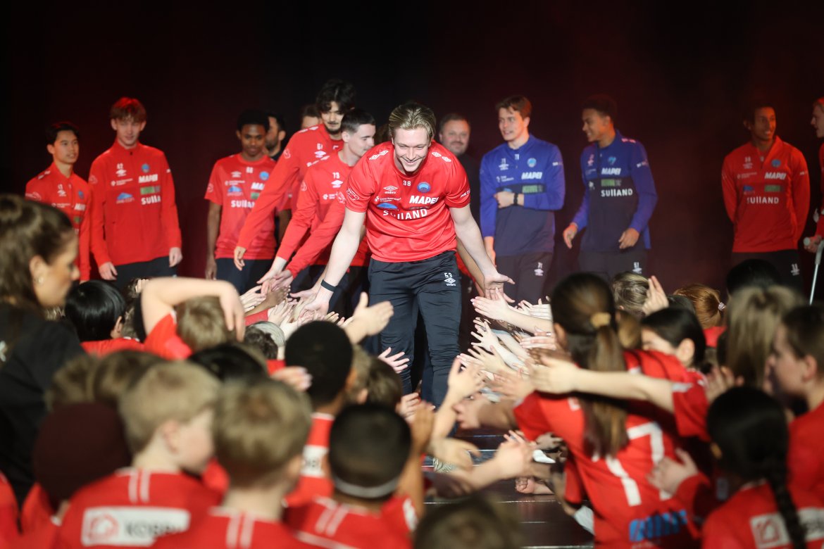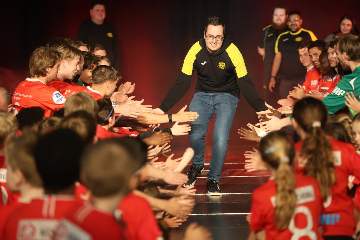 Se A-lagsspillernes presentasjon på scena:
