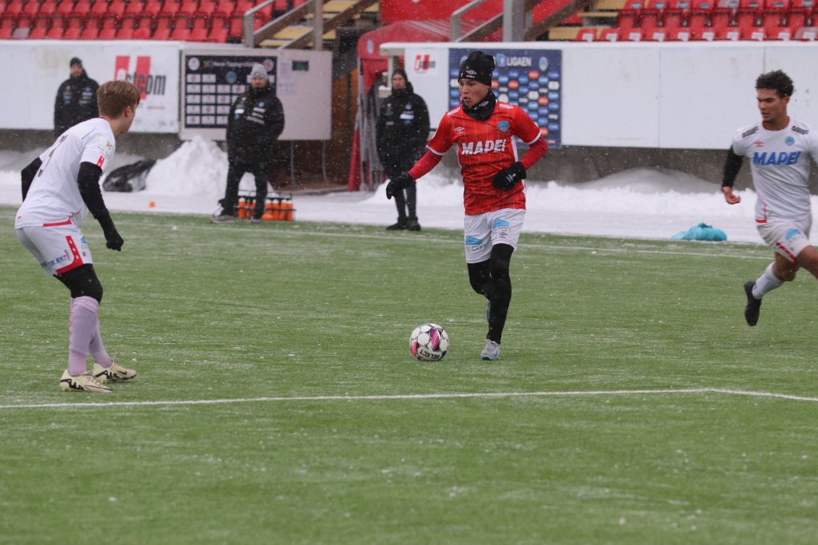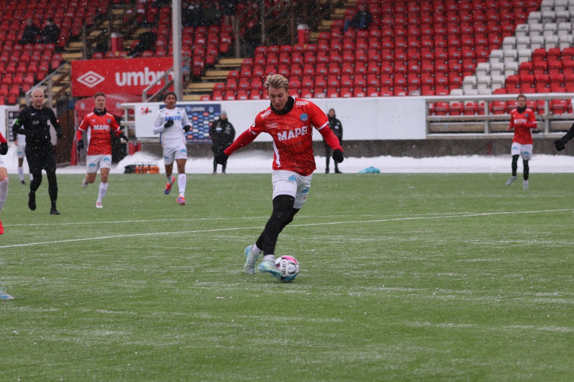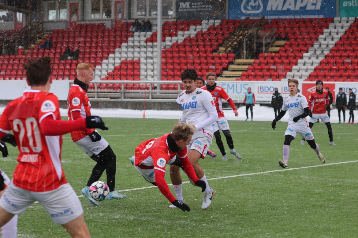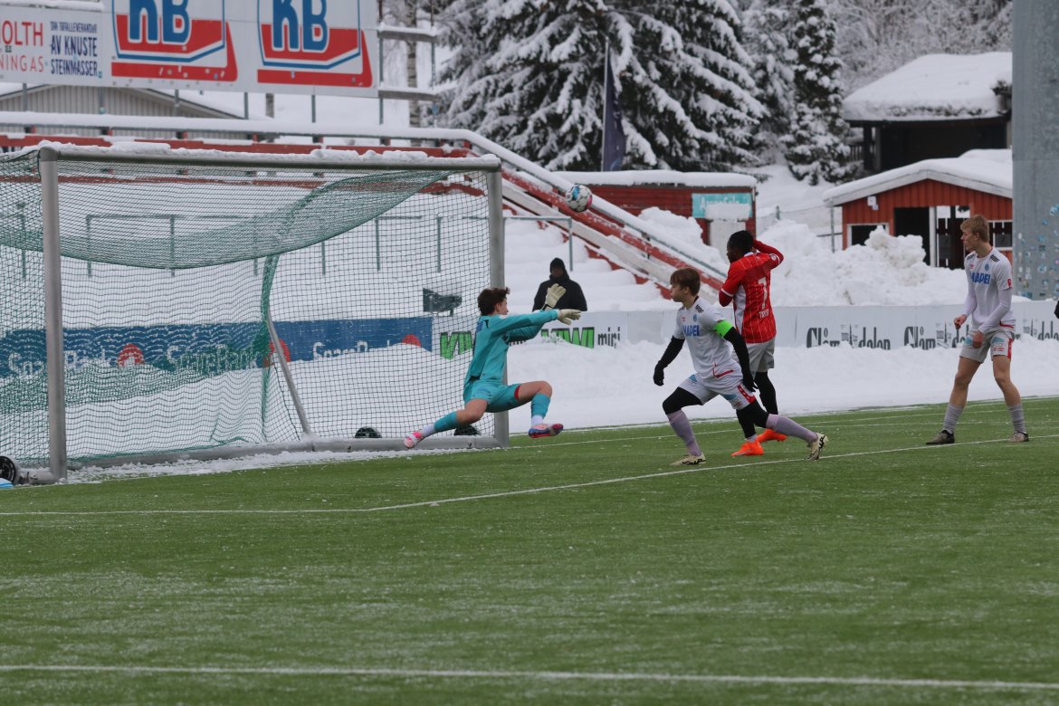 Det startet med en sjanse til Andreas Dybevik etter pasning fra Wilhelm Ärlig og en heading fra Joacim Holtan etter et Emil Arendrup Nielsen-innlegg i løpet av de første fem minuttene.