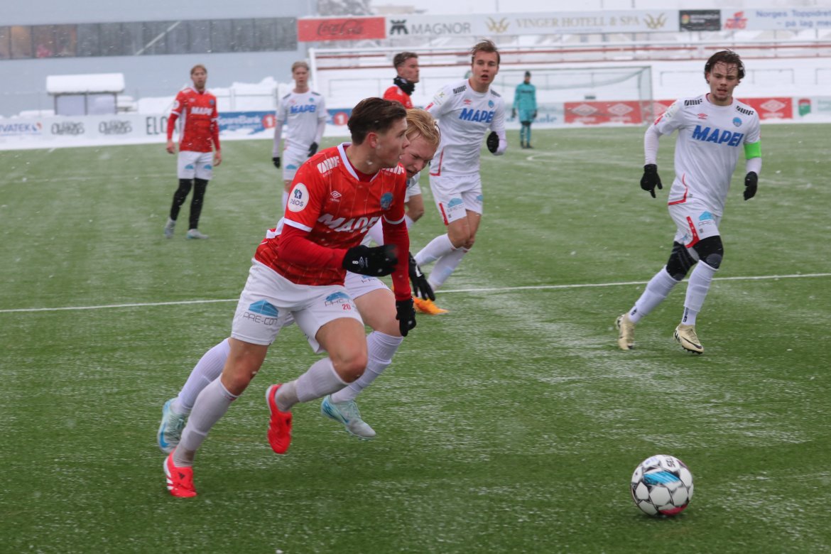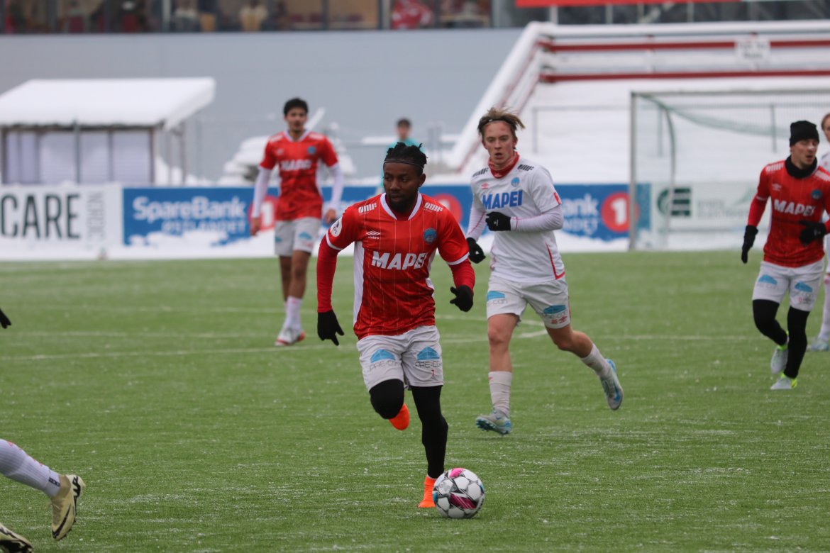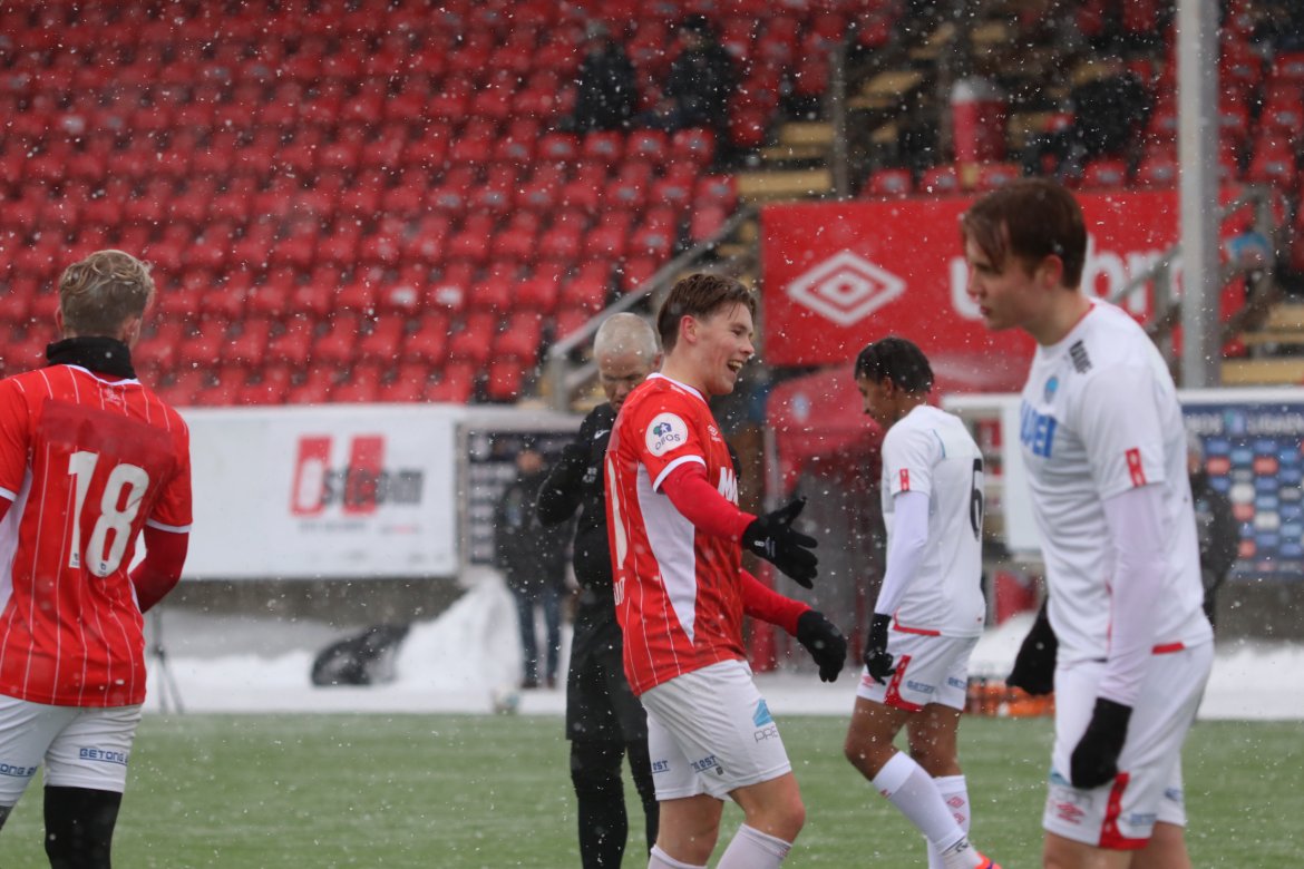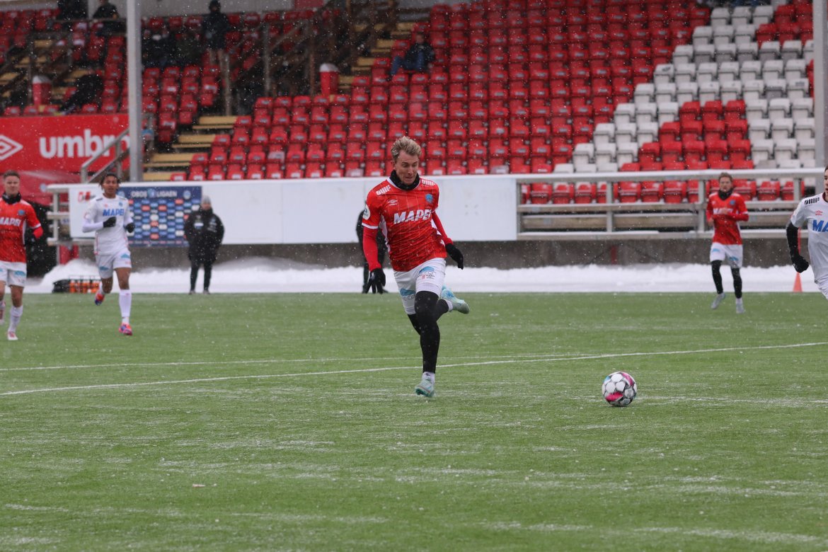 Det startet med en sjanse til Andreas Dybevik etter pasning fra Wilhelm Ärlig og en heading fra Joacim Holtan etter et Emil Arendrup Nielsen-innlegg i løpet av de første fem minuttene.