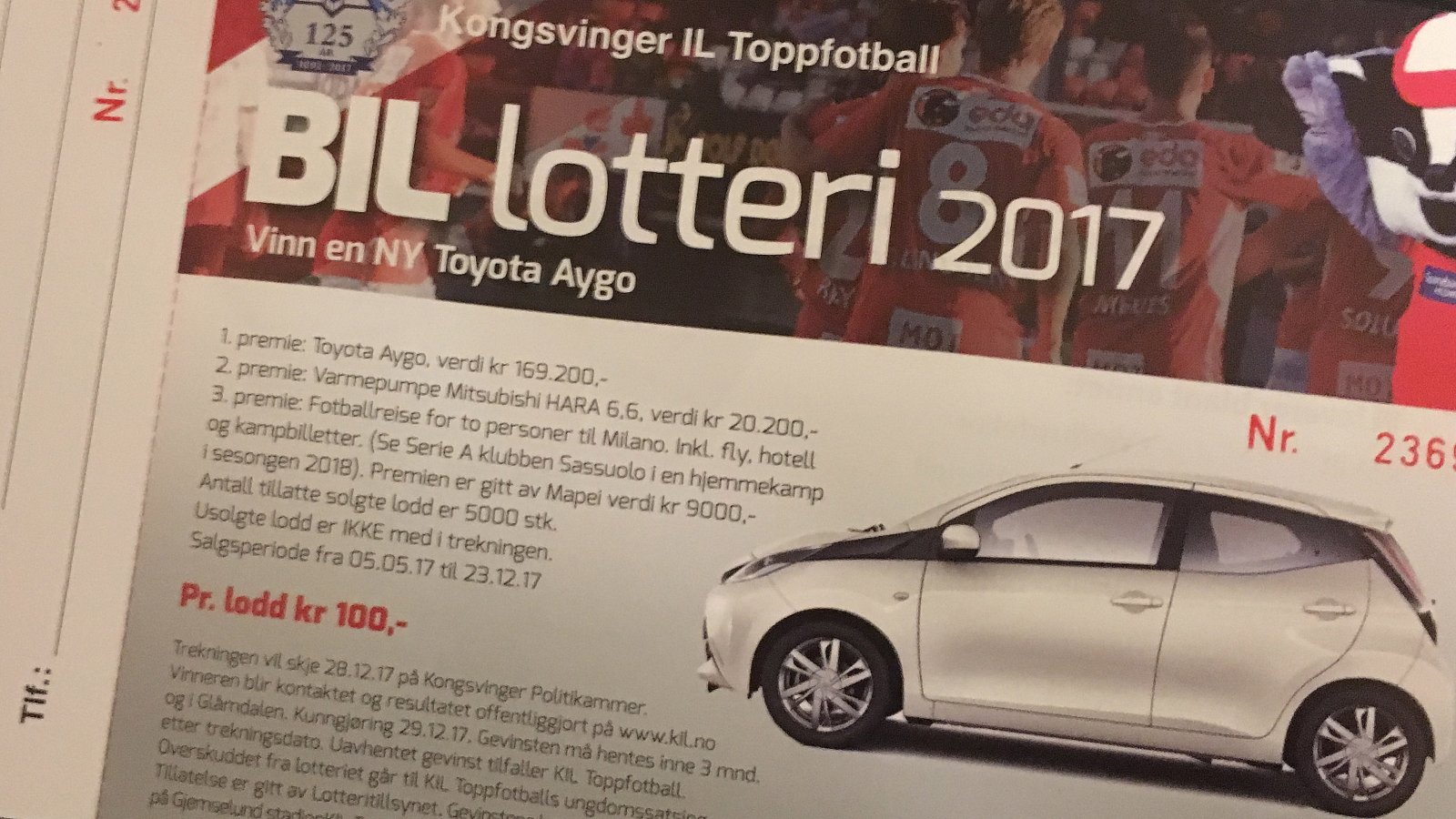 28. desember ble det foretatt trekning i årets billotteri. Følgende nummere vant: