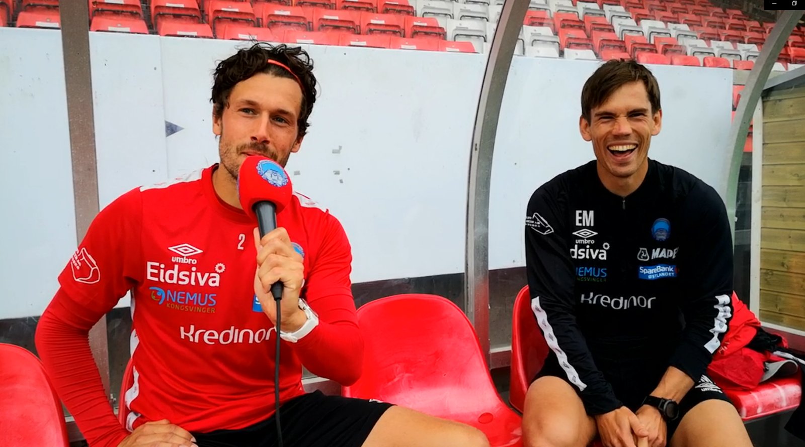 Fredrik Pålerud og Eirik Mæland er i godt humør foran treningskampen mot Strømmen.