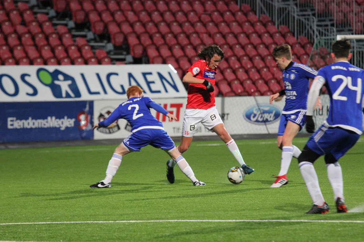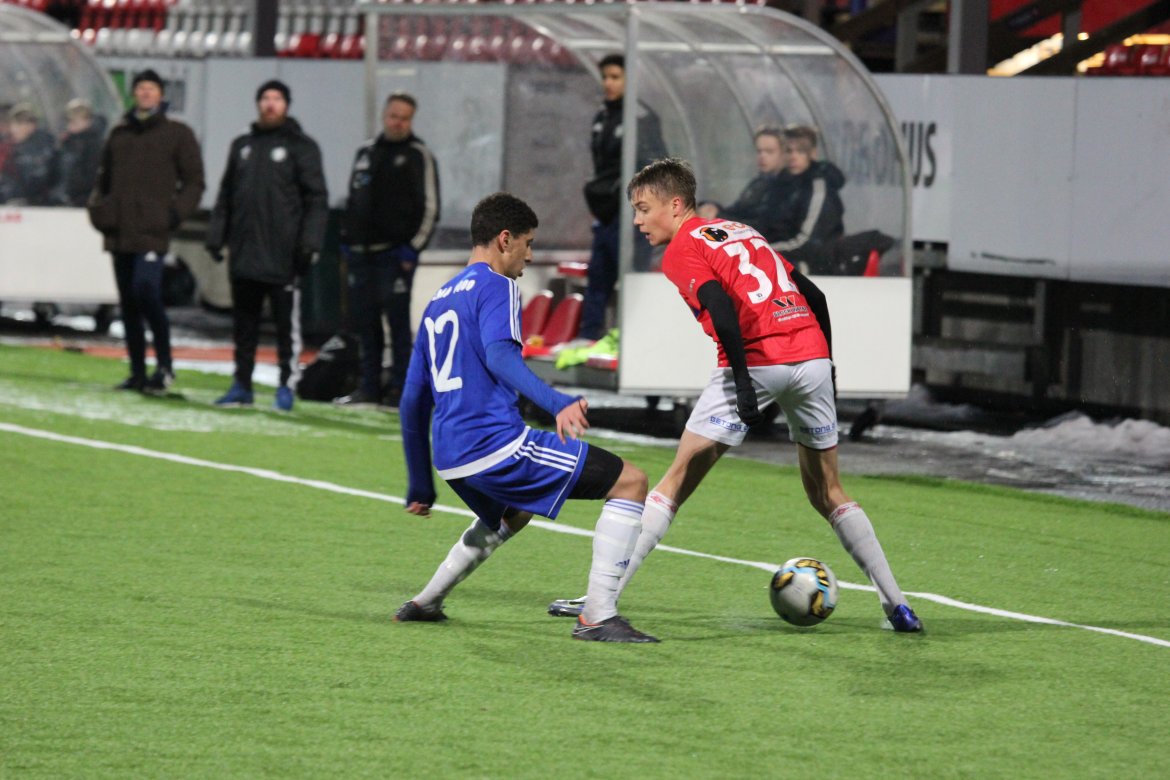 Mål: 0-1 (6), 1-1 Magnus Lavik Soleng (9), 1-2 (36), 2-2 Adrian Barosen (41)