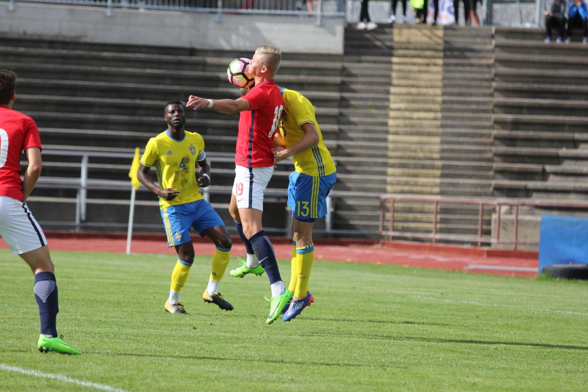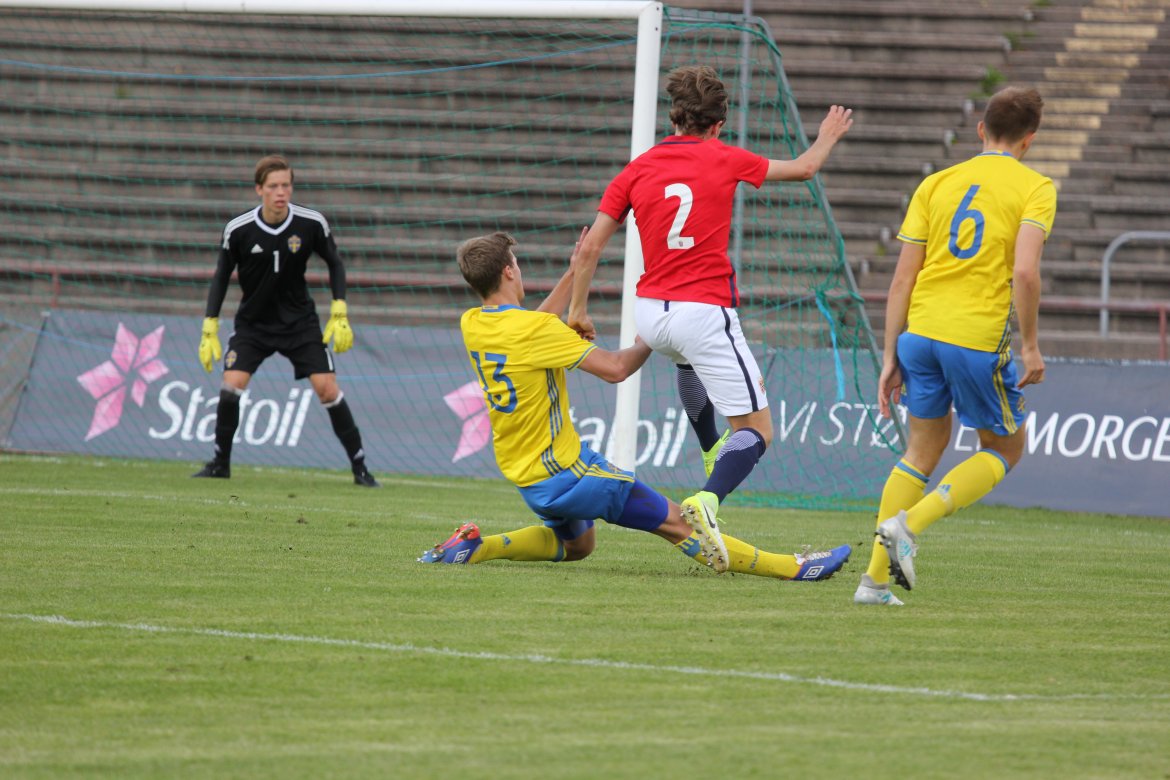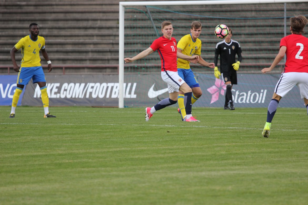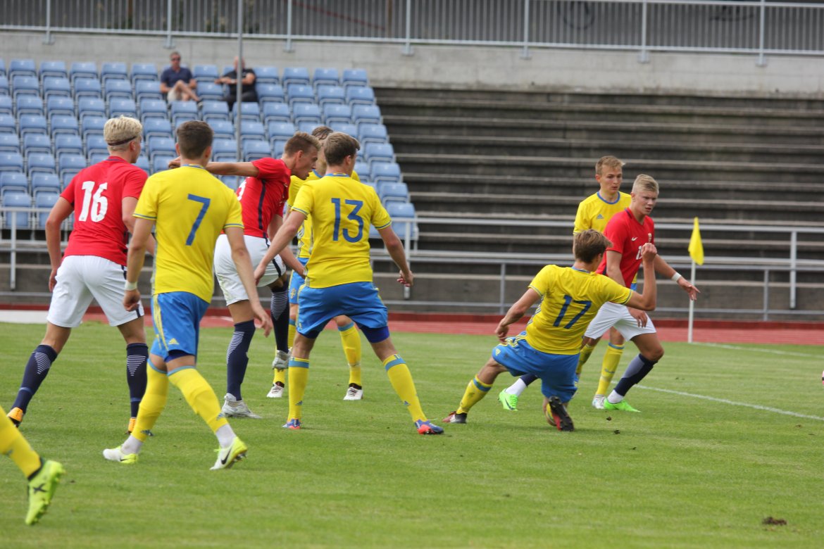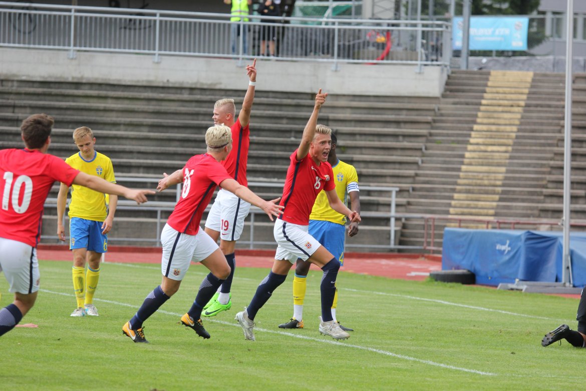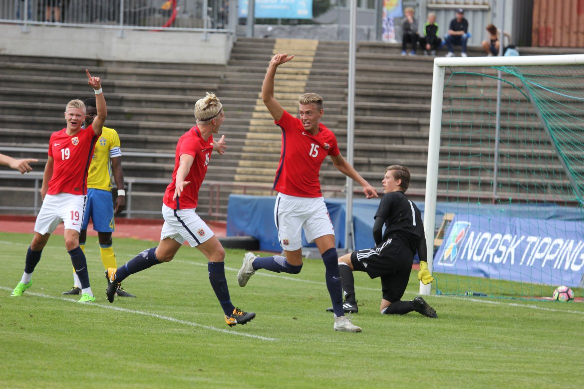 Mål: 1-0 Christian Dahle Borchgrevink (1), 1-1 Sverige (6), 2-1 Andreas Ueland (20), 3-1 Erling Braut Håland (23), 3-2, 4-2 Borchgrevink (54)