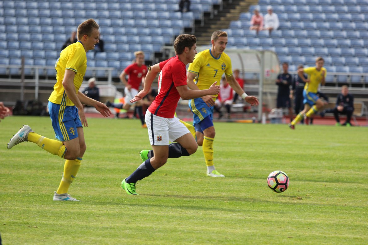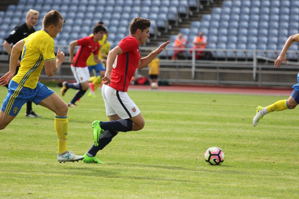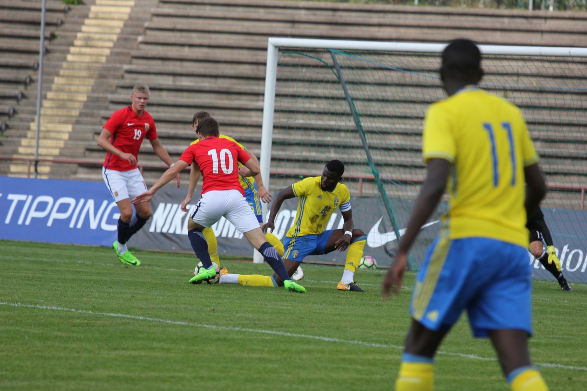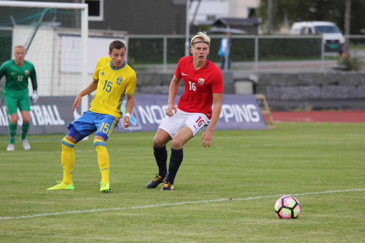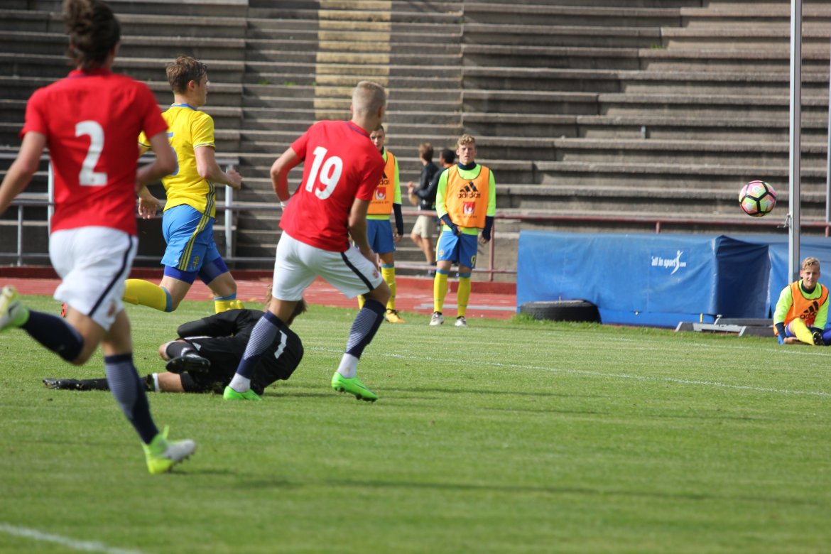 Mål: 1-0 Christian Dahle Borchgrevink (1), 1-1 Sverige (6), 2-1 Andreas Ueland (20), 3-1 Erling Braut Håland (23), 3-2, 4-2 Borchgrevink (54)