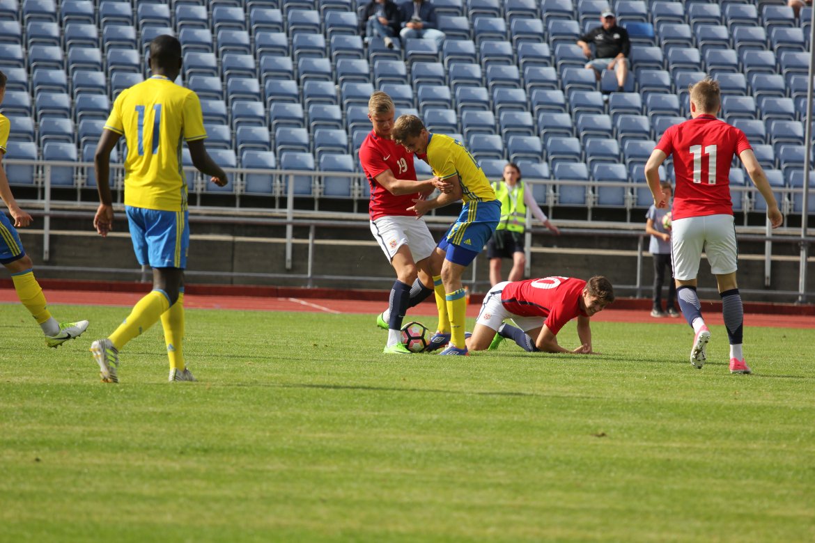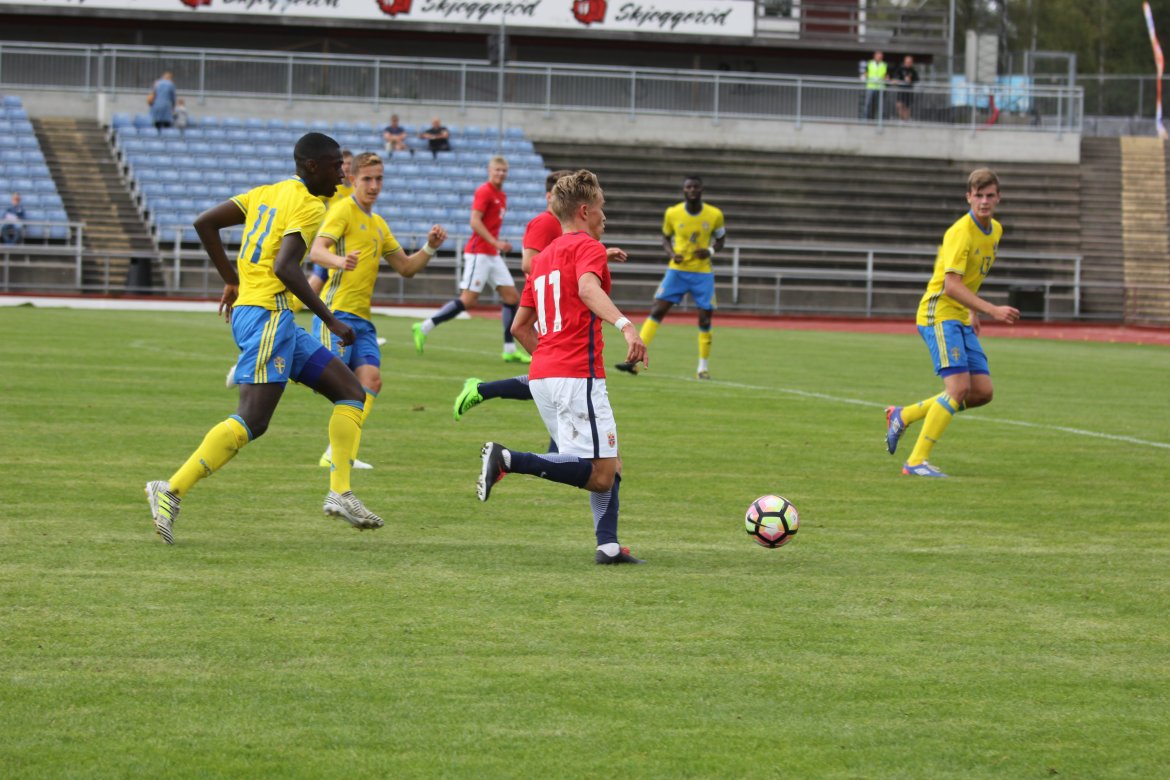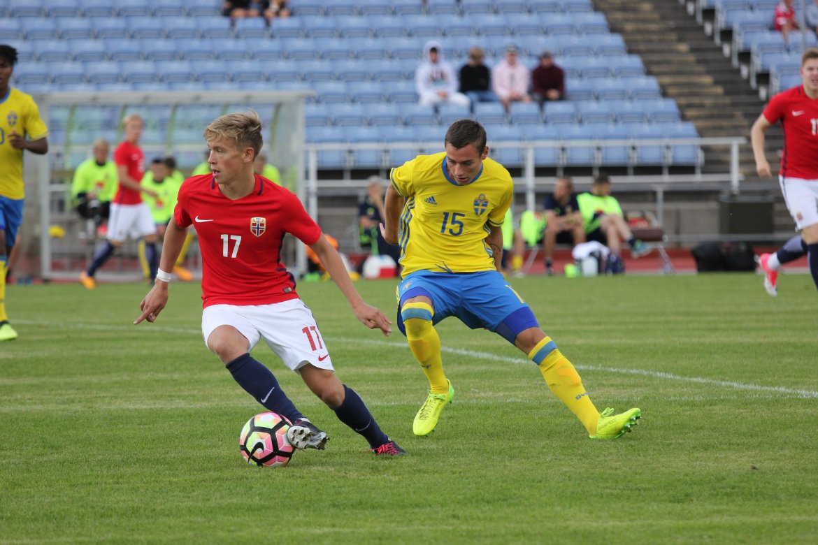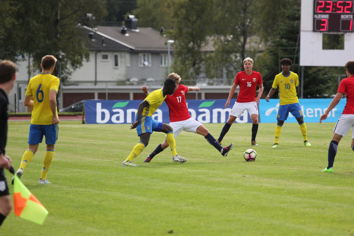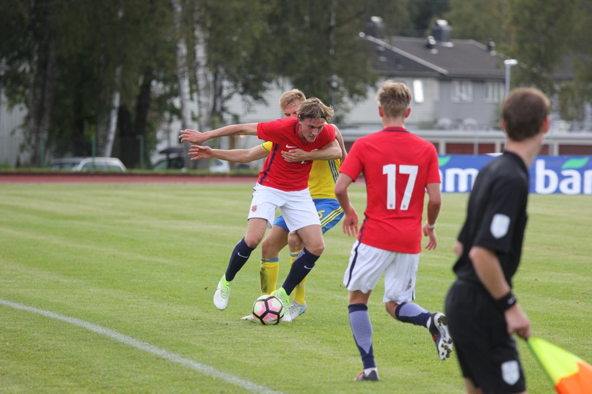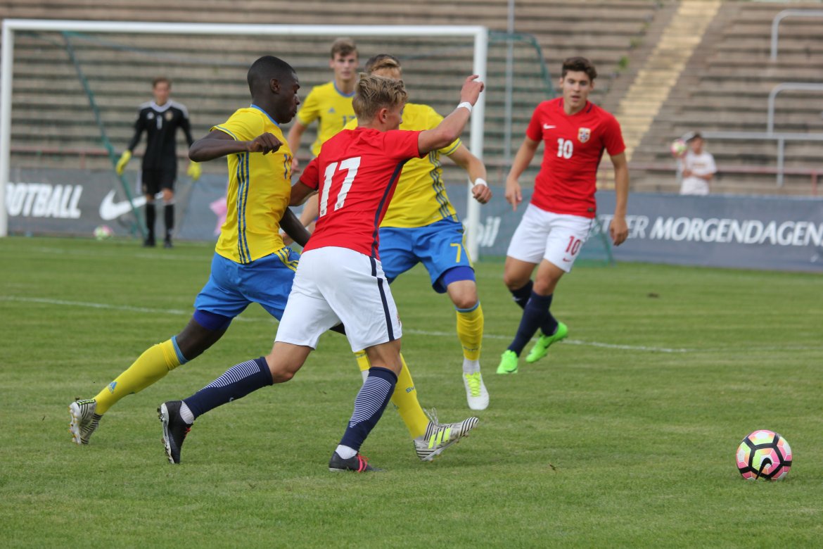 Mål: 1-0 Christian Dahle Borchgrevink (1), 1-1 Sverige (6), 2-1 Andreas Ueland (20), 3-1 Erling Braut Håland (23), 3-2, 4-2 Borchgrevink (54)