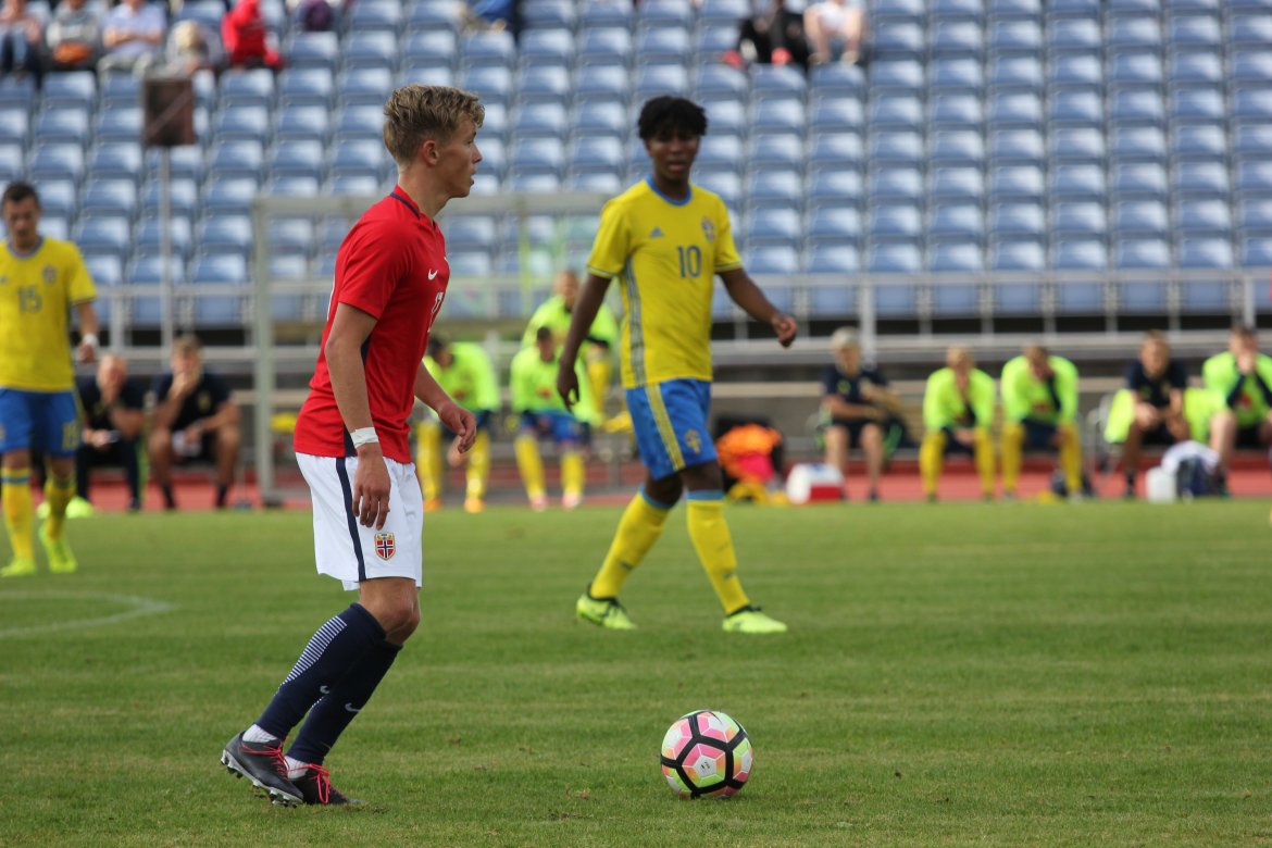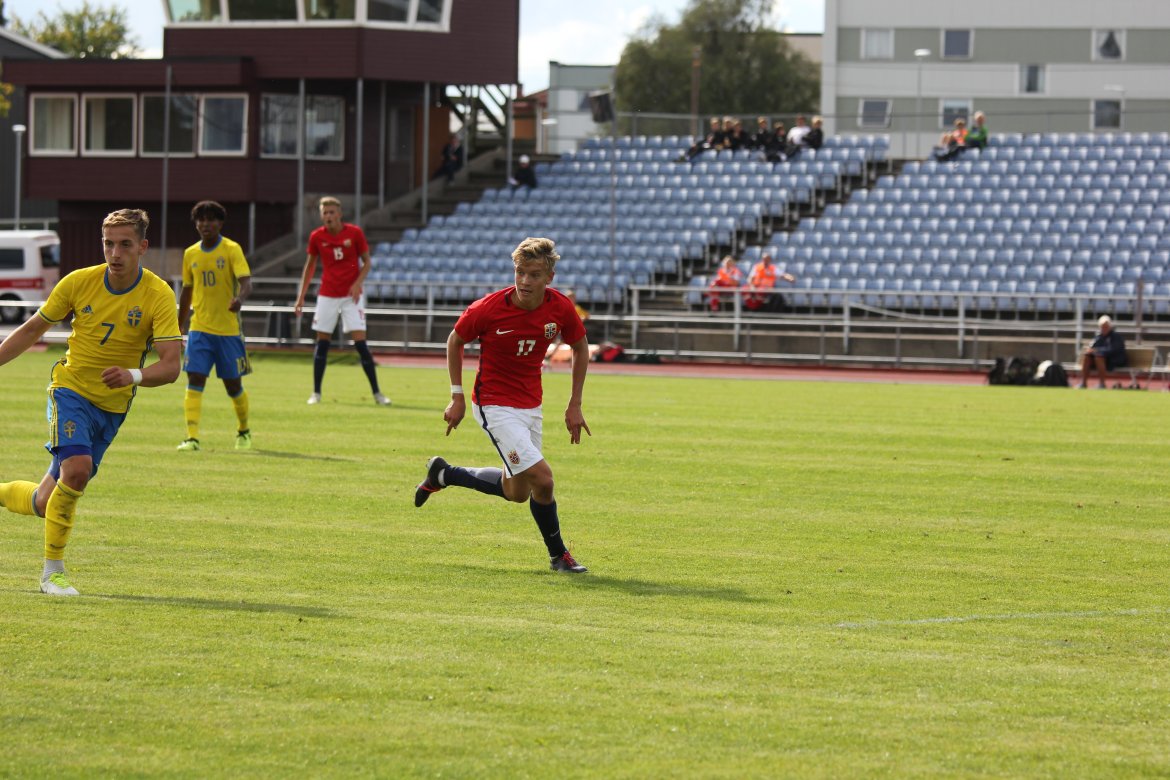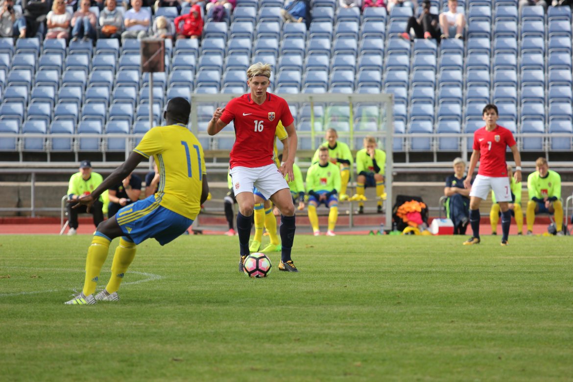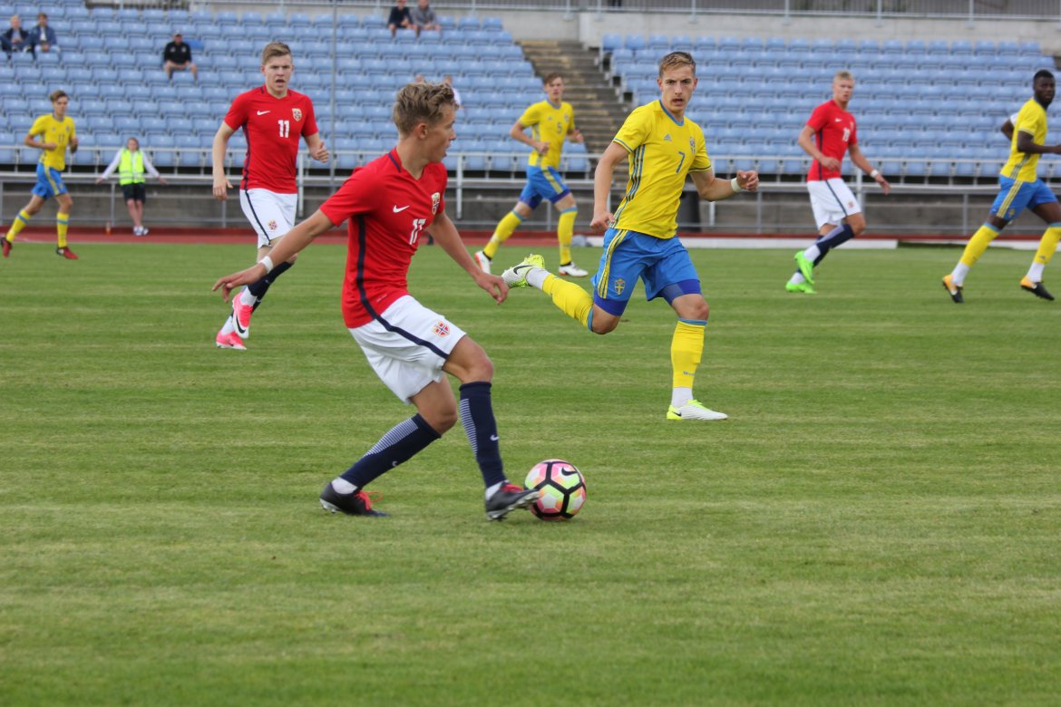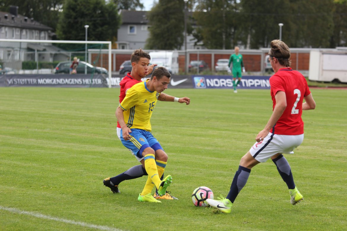 Mål: 1-0 Christian Dahle Borchgrevink (1), 1-1 Sverige (6), 2-1 Andreas Ueland (20), 3-1 Erling Braut Håland (23), 3-2, 4-2 Borchgrevink (54)