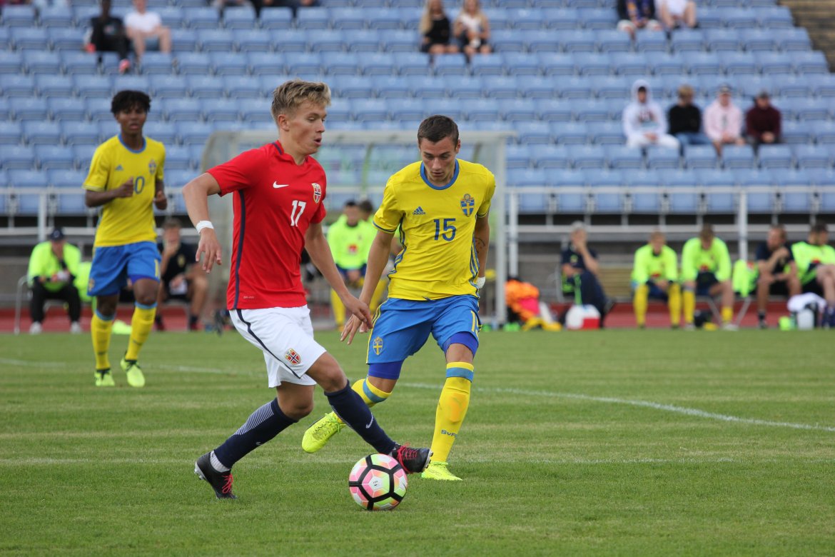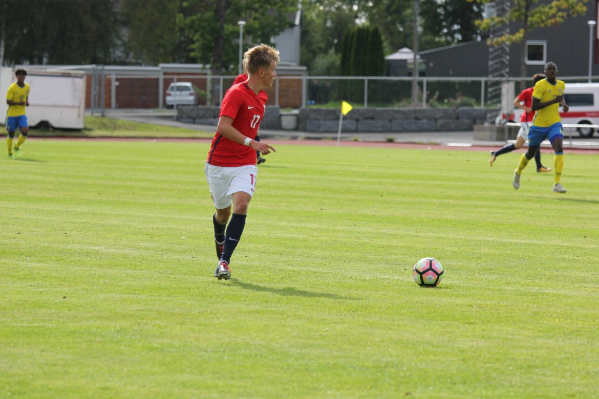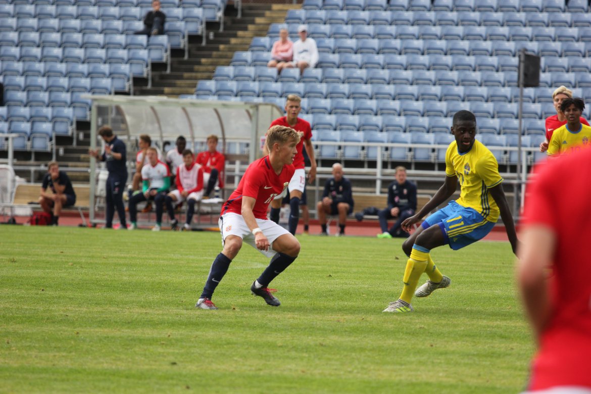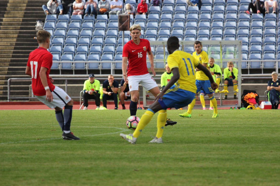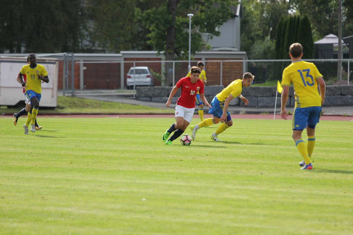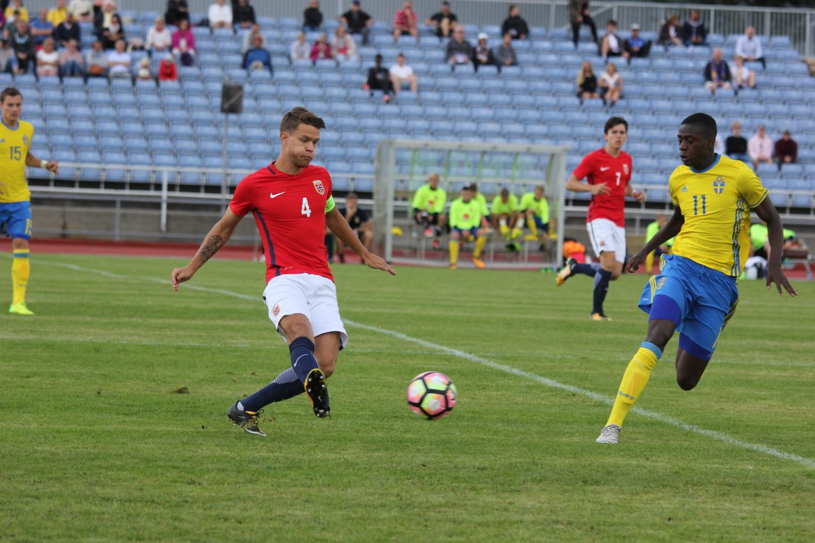Mål: 1-0 Christian Dahle Borchgrevink (1), 1-1 Sverige (6), 2-1 Andreas Ueland (20), 3-1 Erling Braut Håland (23), 3-2, 4-2 Borchgrevink (54)
