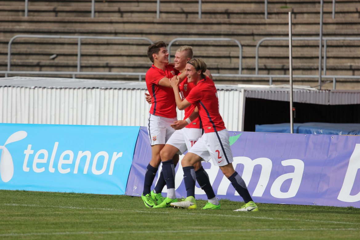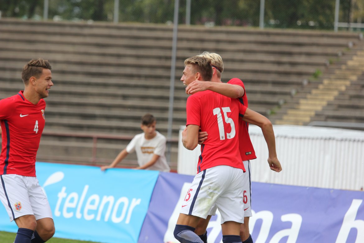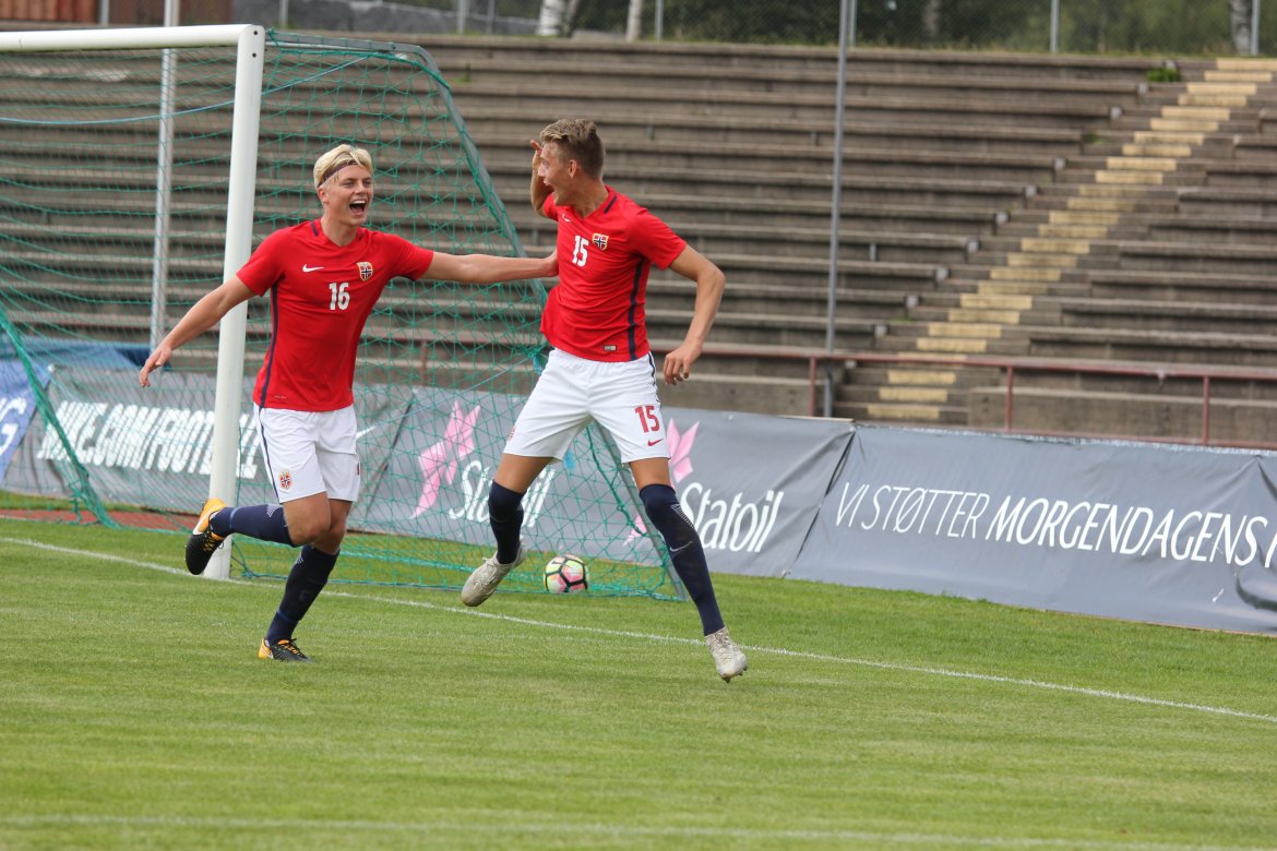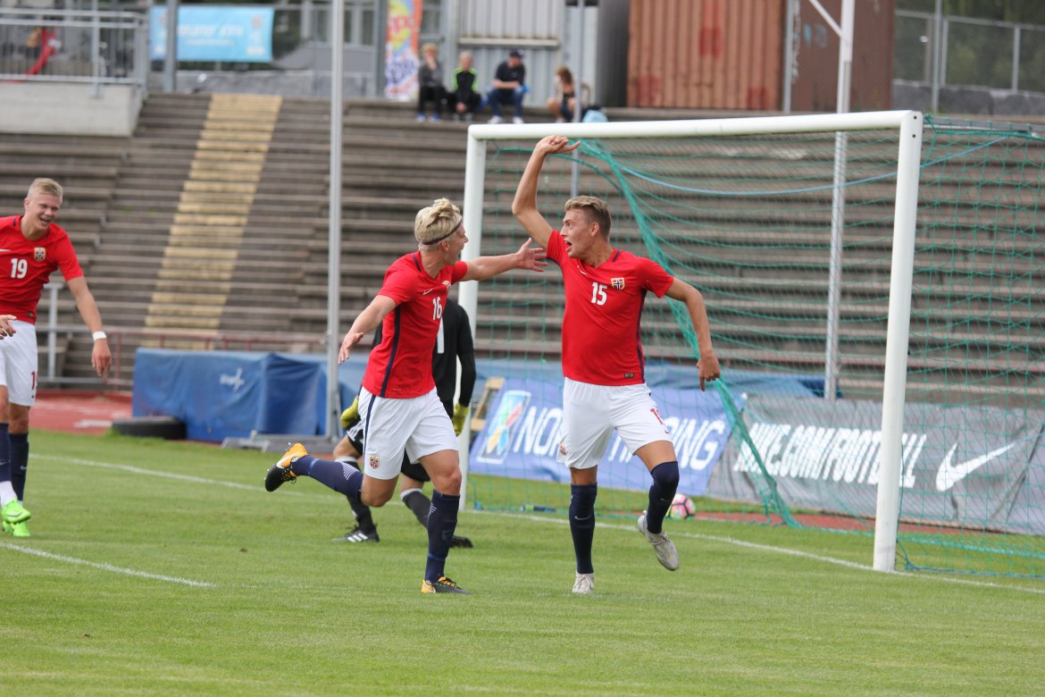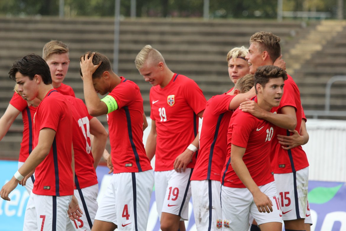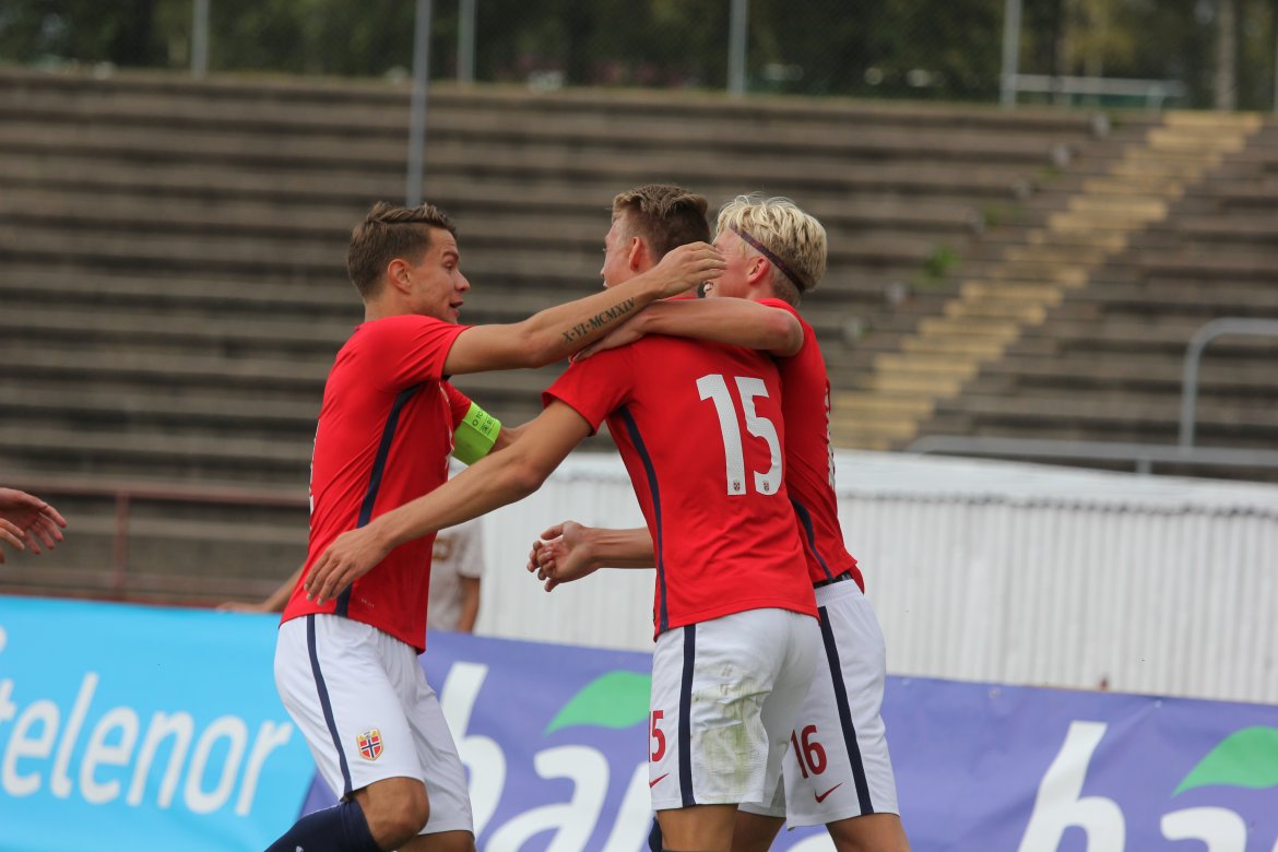Norge 5-2-3): Julian Faye Lund - Christian Dahle Borchgrevink (Nico Mickelson fra 89.), Tord Salte (Ulrik Fredriksen fra 69.), Andreas Ueland, Tobias Børkeeiet (Sivert Westerlund fra 89.), Morten Renå Olsen (Adnan Hadzic fra 79.) - Martin Tangen Vinjor (Emil Bohinen fra 61.), Hugo Vetlesen - Eman Markovic (Basit Agouda fra 61.), Erling Braut Håland (Sebastian Pedersen fra 61.), Jens Petter Hauge (Hasan Duman fra 46.)