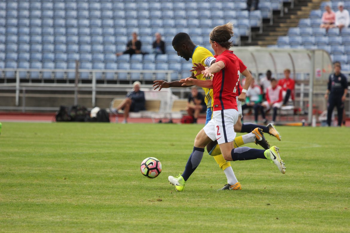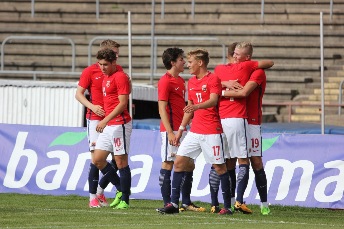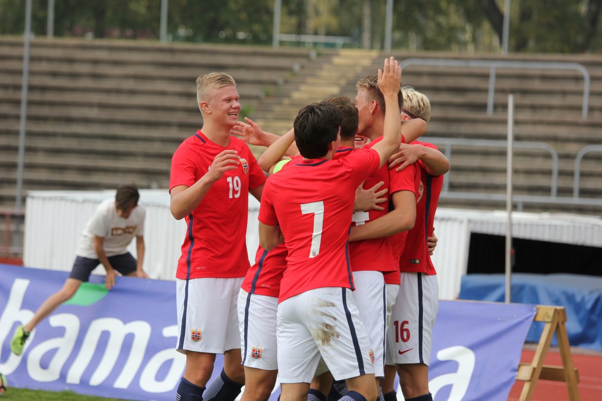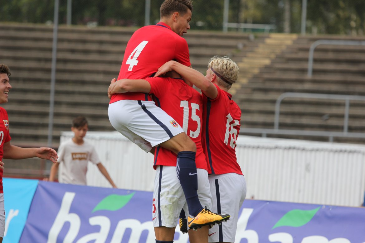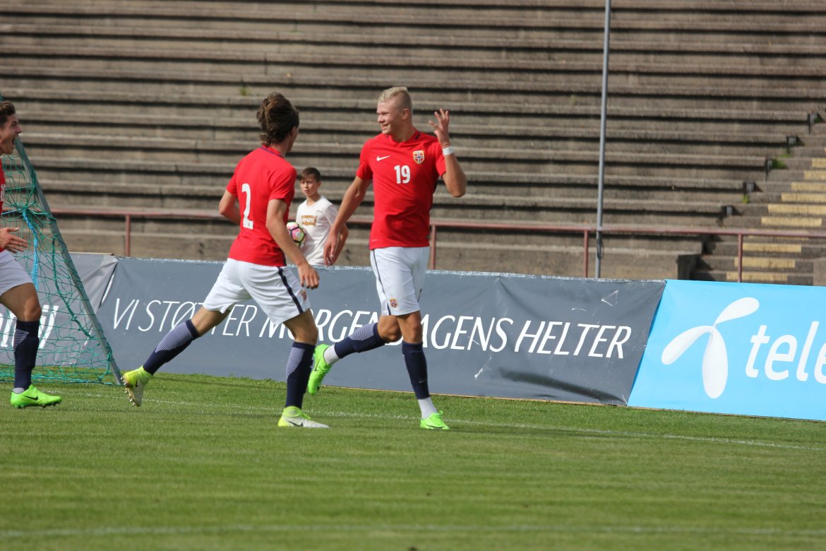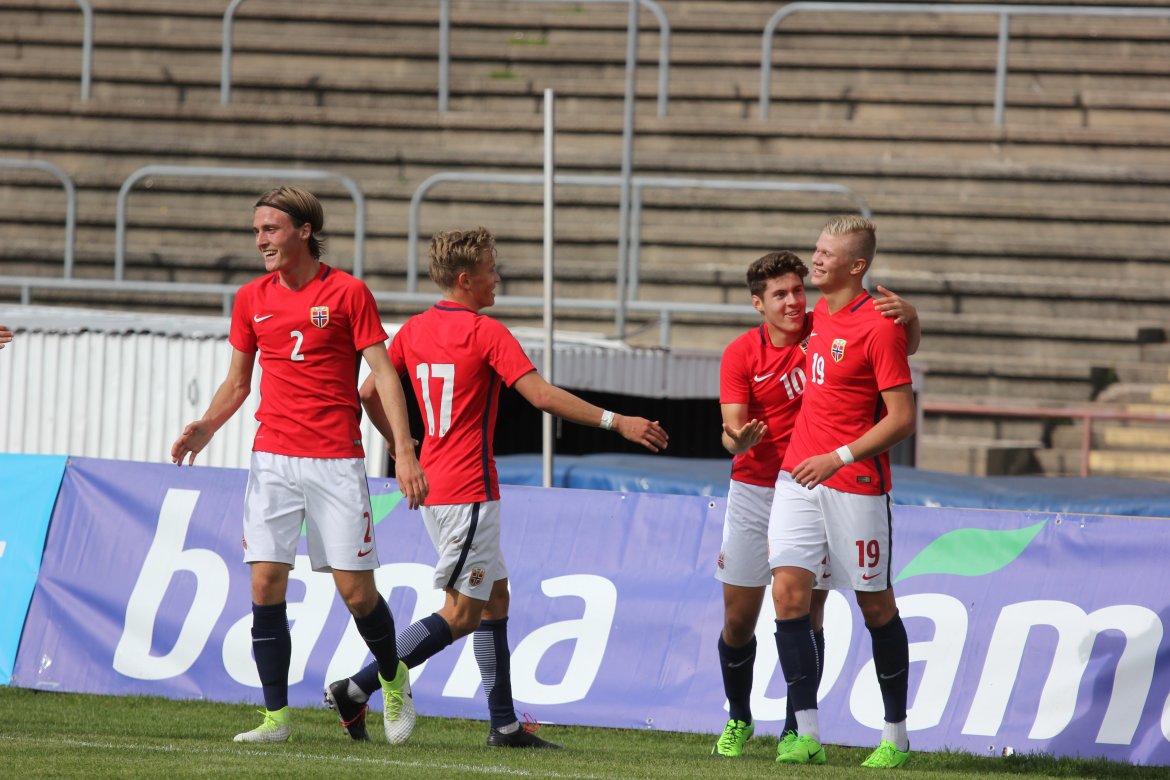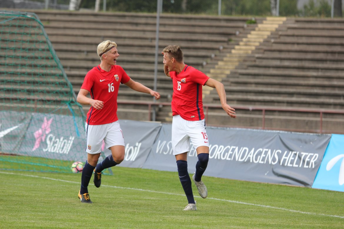Norge 5-2-3): Julian Faye Lund - Christian Dahle Borchgrevink (Nico Mickelson fra 89.), Tord Salte (Ulrik Fredriksen fra 69.), Andreas Ueland, Tobias Børkeeiet (Sivert Westerlund fra 89.), Morten Renå Olsen (Adnan Hadzic fra 79.) - Martin Tangen Vinjor (Emil Bohinen fra 61.), Hugo Vetlesen - Eman Markovic (Basit Agouda fra 61.), Erling Braut Håland (Sebastian Pedersen fra 61.), Jens Petter Hauge (Hasan Duman fra 46.)