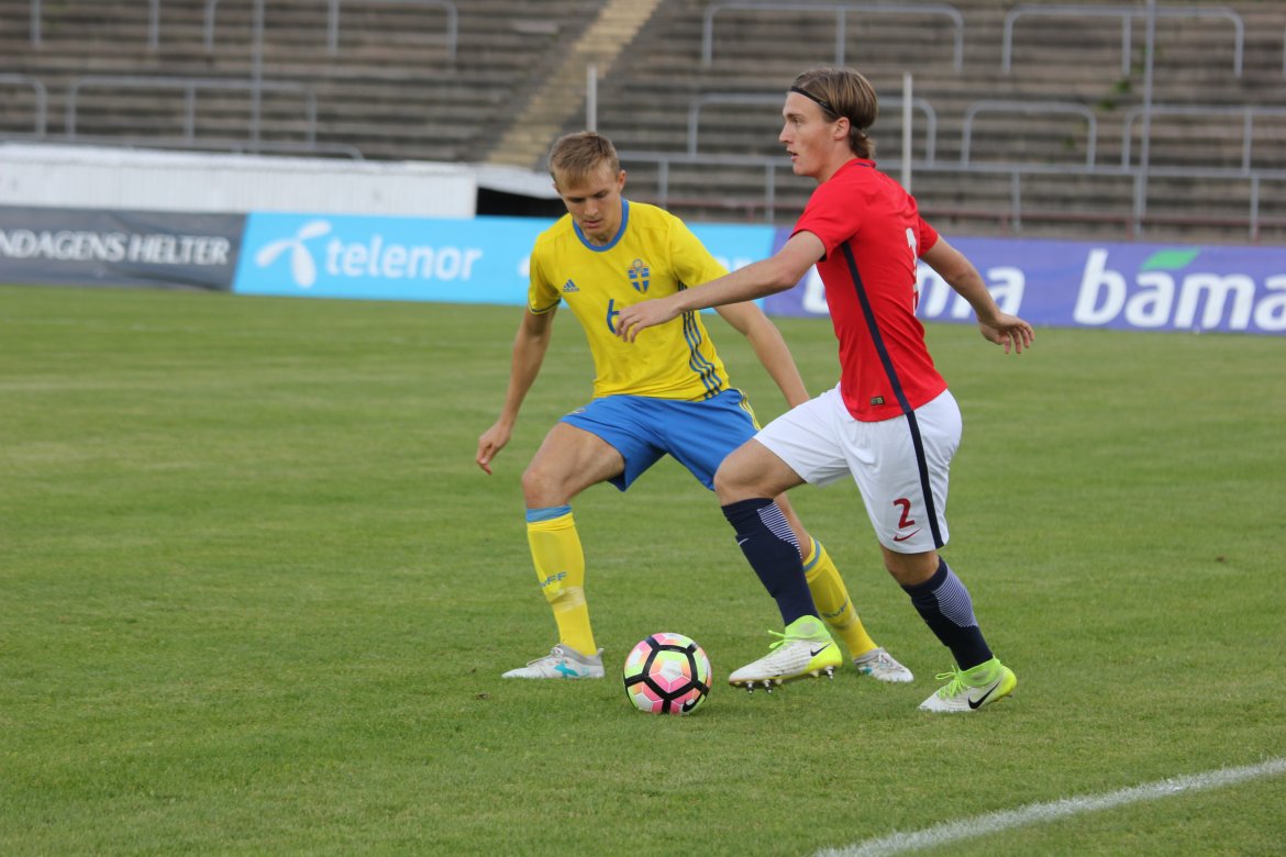 Martin Tangen Vinjor og Norge G18 slo lørdag ettermiddag Sverige 4-2 i Sandefjord.