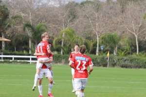 Målscorer Simon Marklund og midtbanemotor Martin Tangen Vinjor var fornøyde etter seier i første treningskamp.