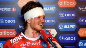 Christian Røer var en blodig, men glad mann etter kampen mot Tromsdalen. - Vi responderer på en god måte, sier forsvarsspilleren.